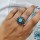 Turquoise Indian Handcrafted Silver Oxidized Round Stonework Adjustable Free Size Brass Finger Ring for Girls