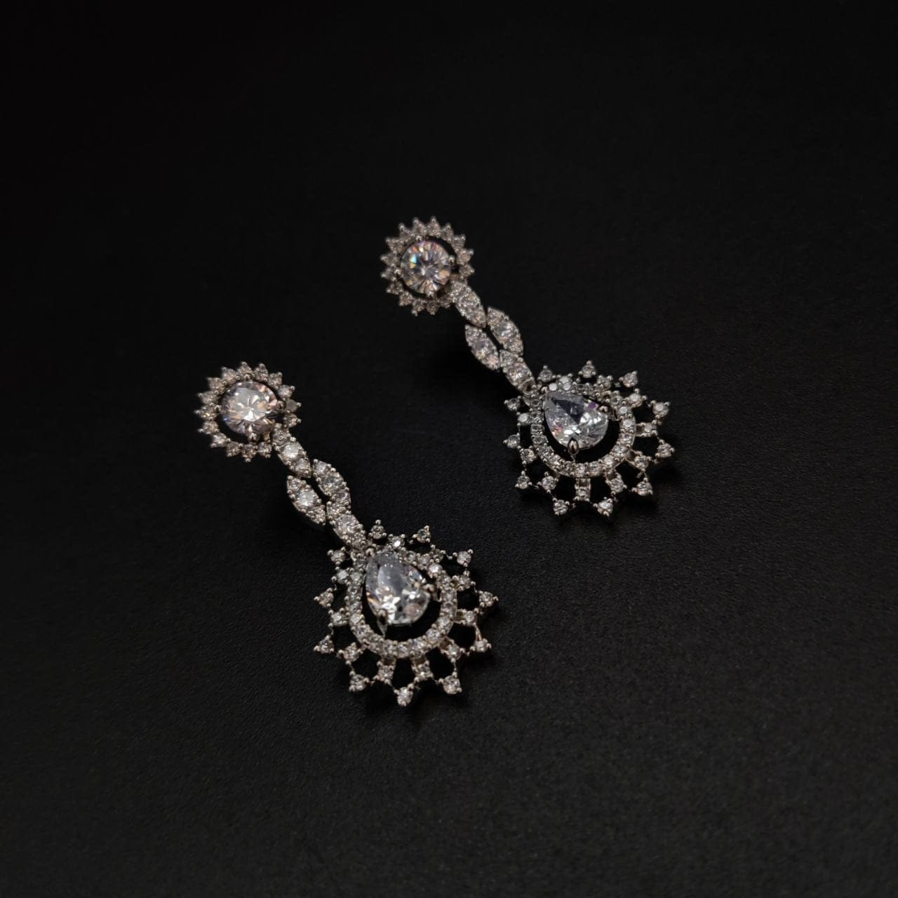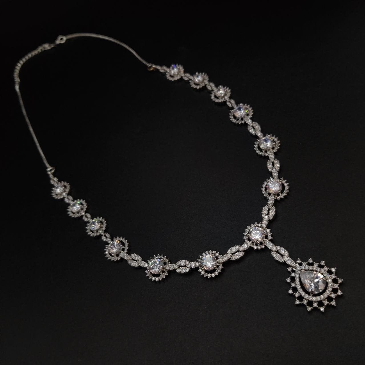 Bridal American Diamond Pendent Necklace Set Crystal Silver Plated Wedding Jewelry Set for Girls