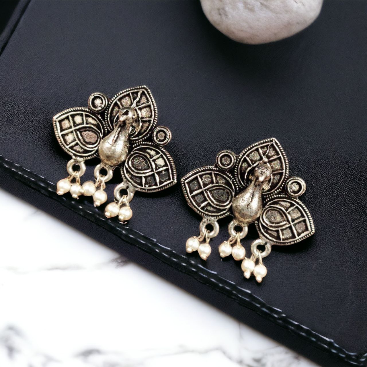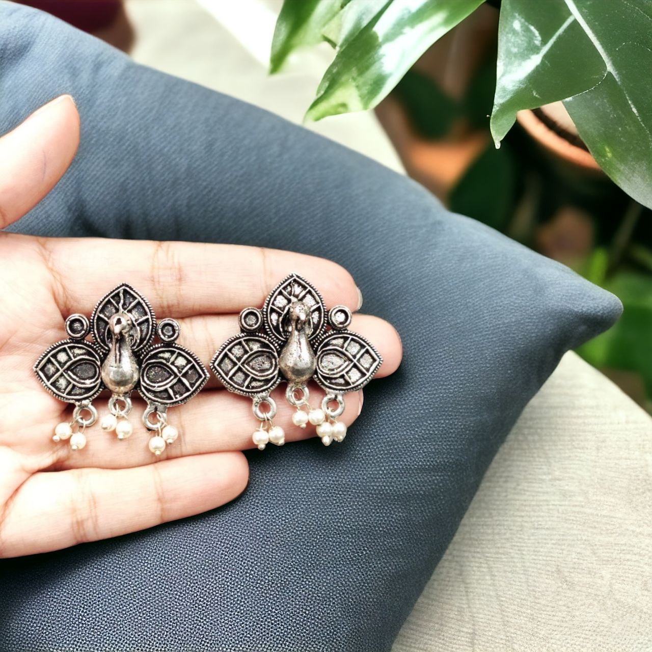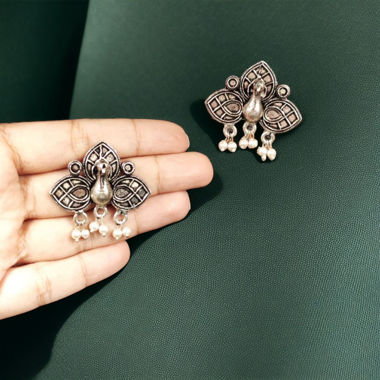 Classy Indian Designer Rustic Peacock Bird Silver Oxidized Earring Stud Ethnic Jewlery for Girls