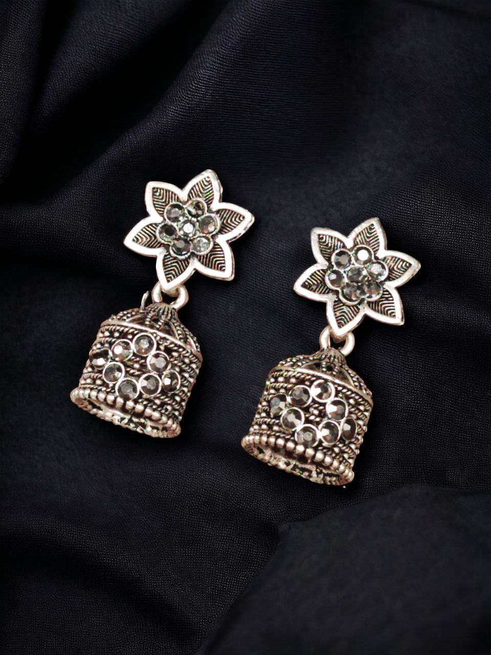 Black Attractive Indian Designer Silver Plated Earring Jhumka Ethnic Jewellery Jumki Set Perfect for Gift to Girls