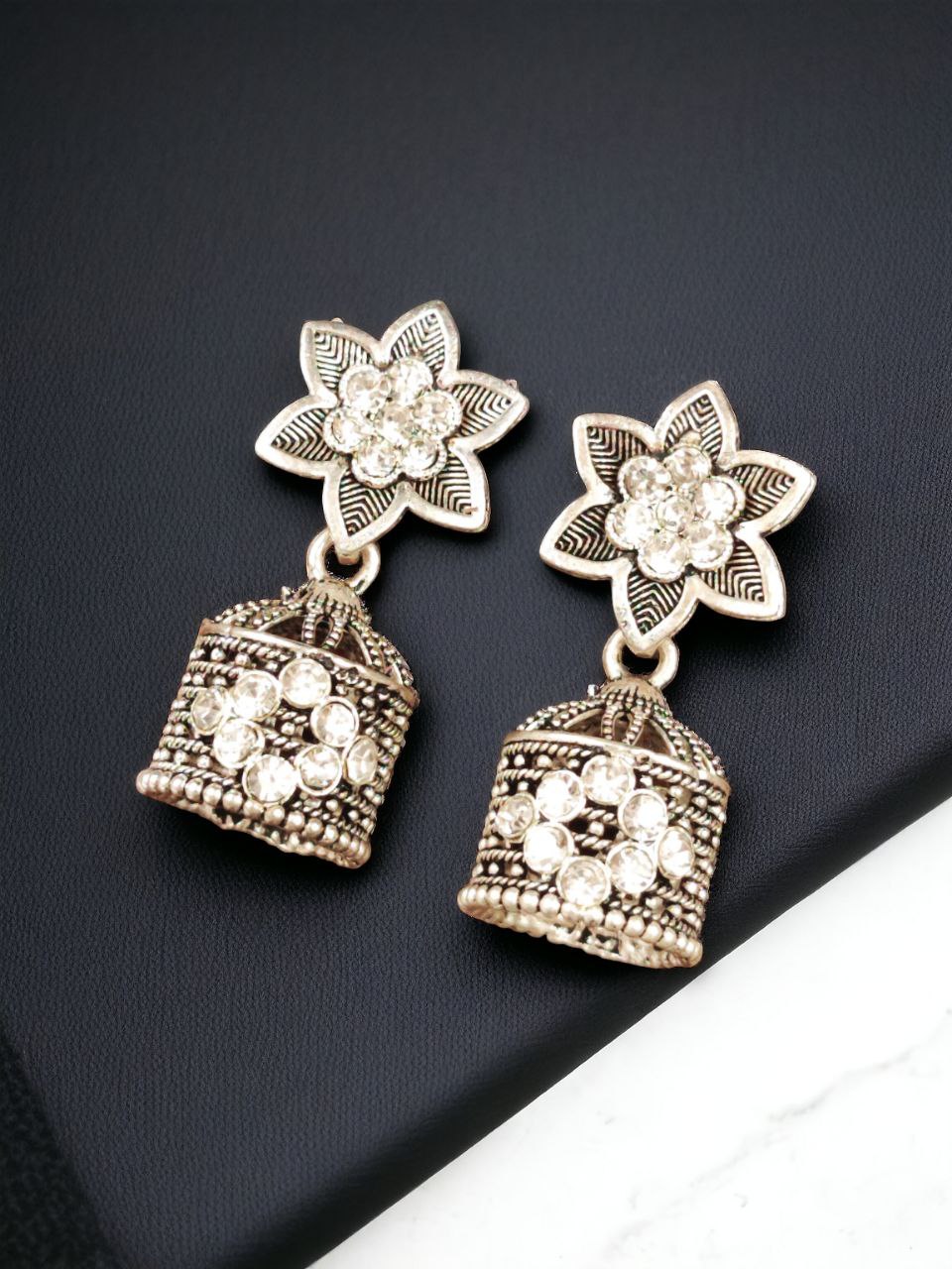 White Attractive Indian Designer Silver Plated Earring Jhumka Ethnic Jewellery Jumki Set Perfect for Gift to Girls