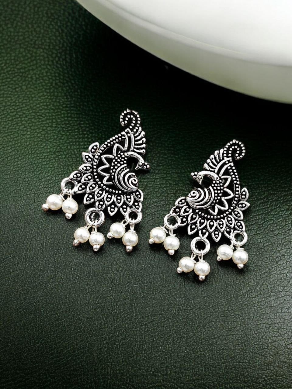 Fashionable Traditional Indian Peacock Silver Oxidized Earring Stud Ethnic Daily Wear Jewlery for Girls