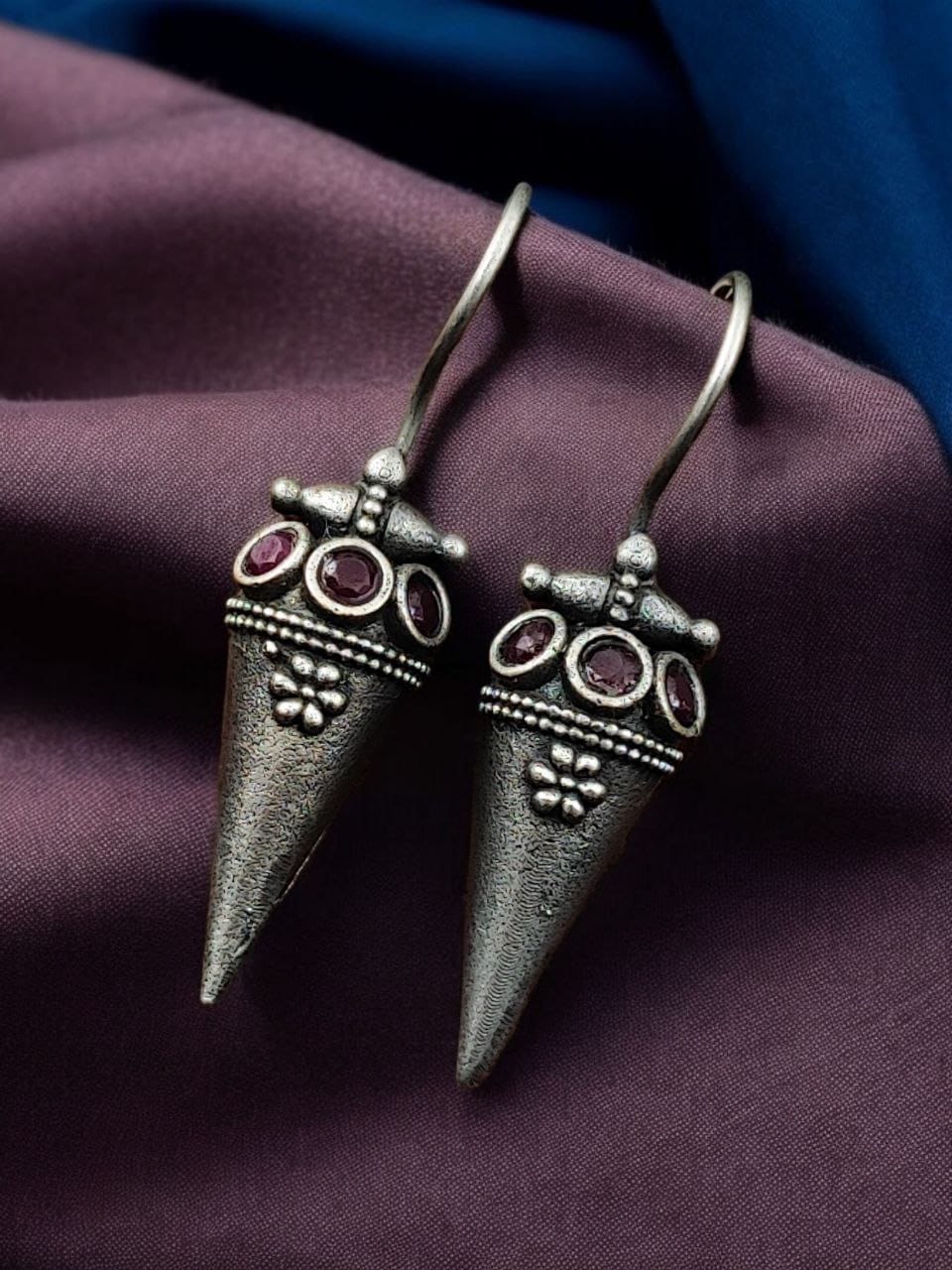 Unique Rustic Vintage Stonework Silver-toned Oxidized Earring Hook Boho Tribal Jewellery for Girls