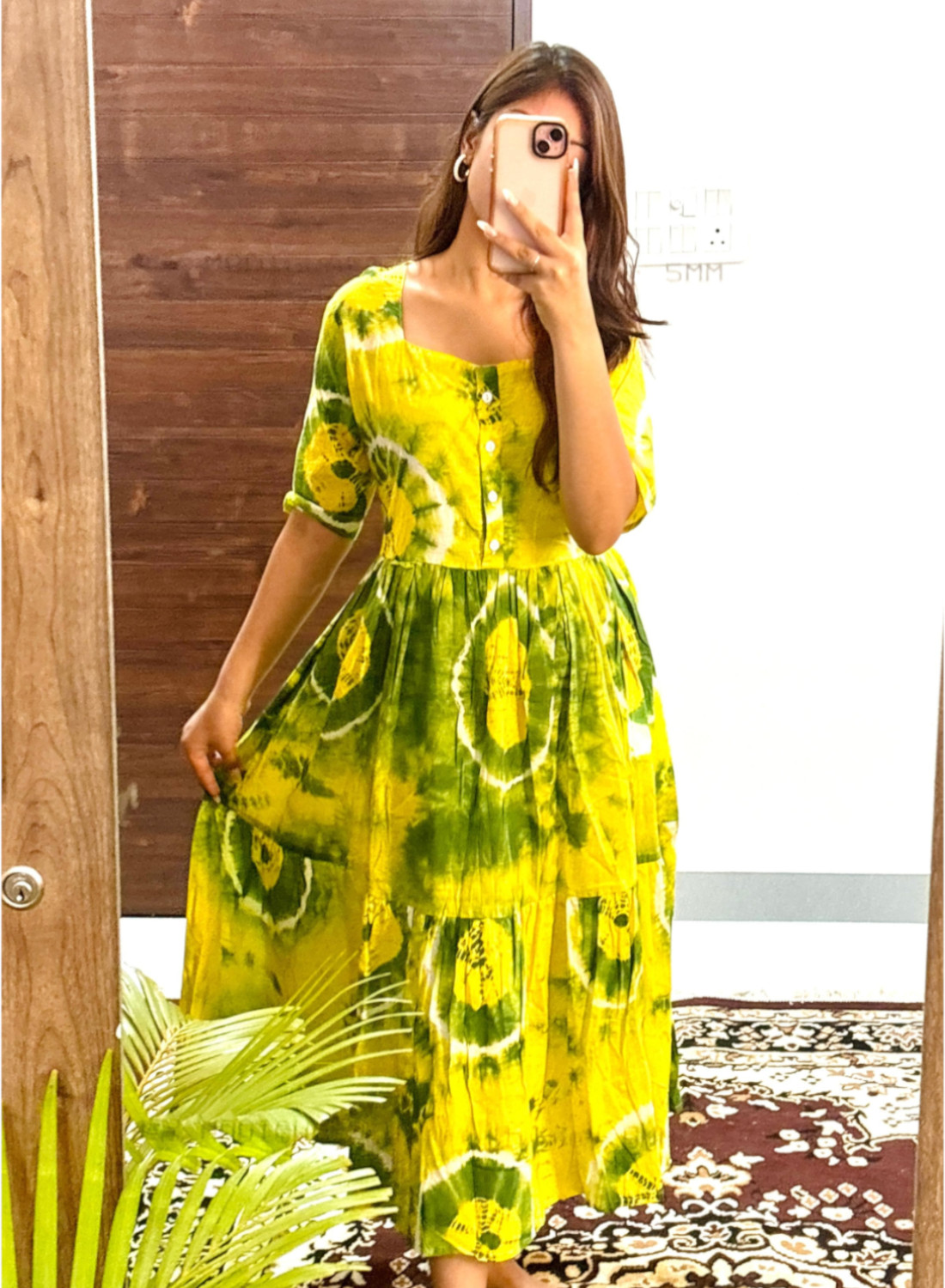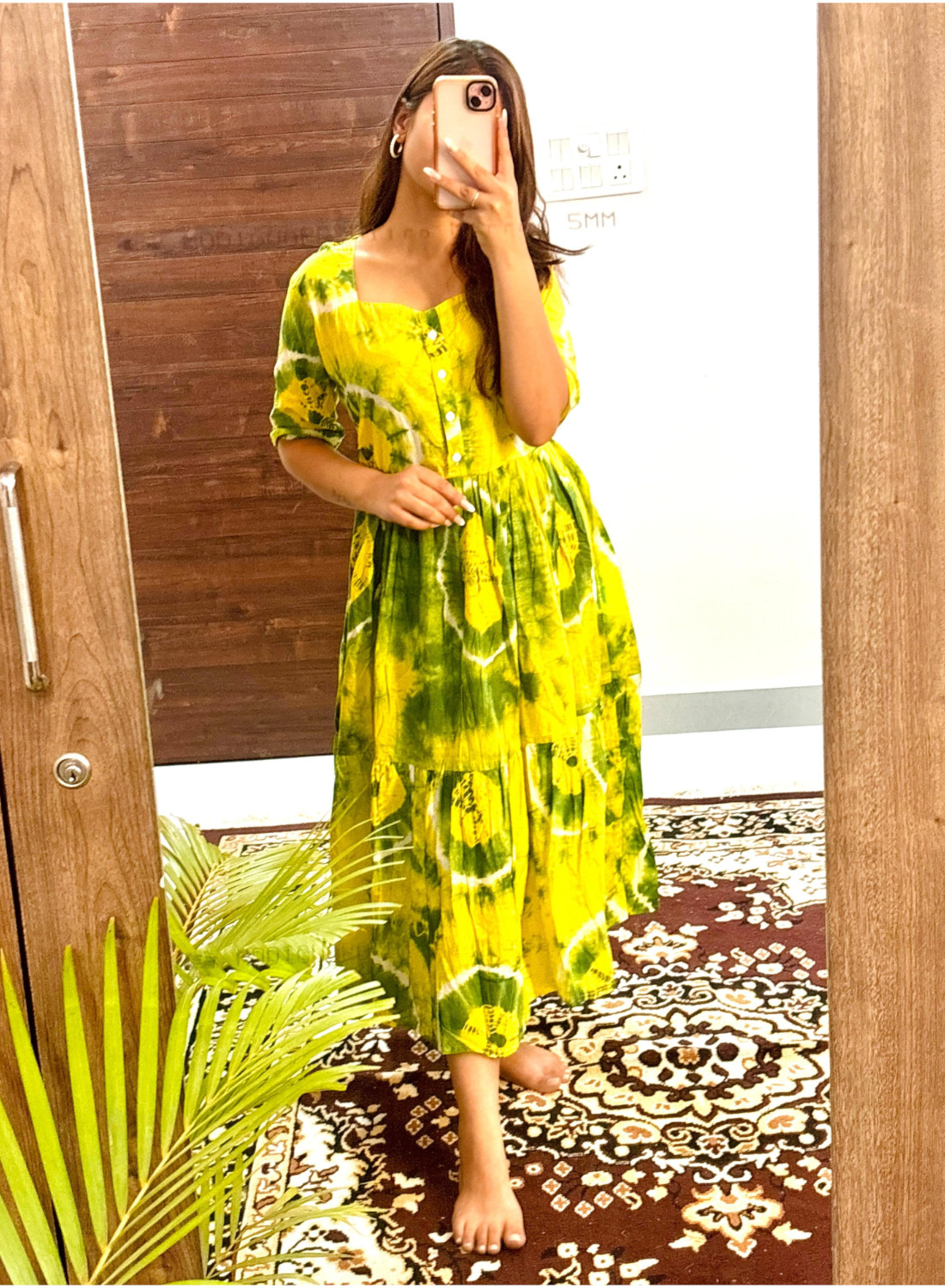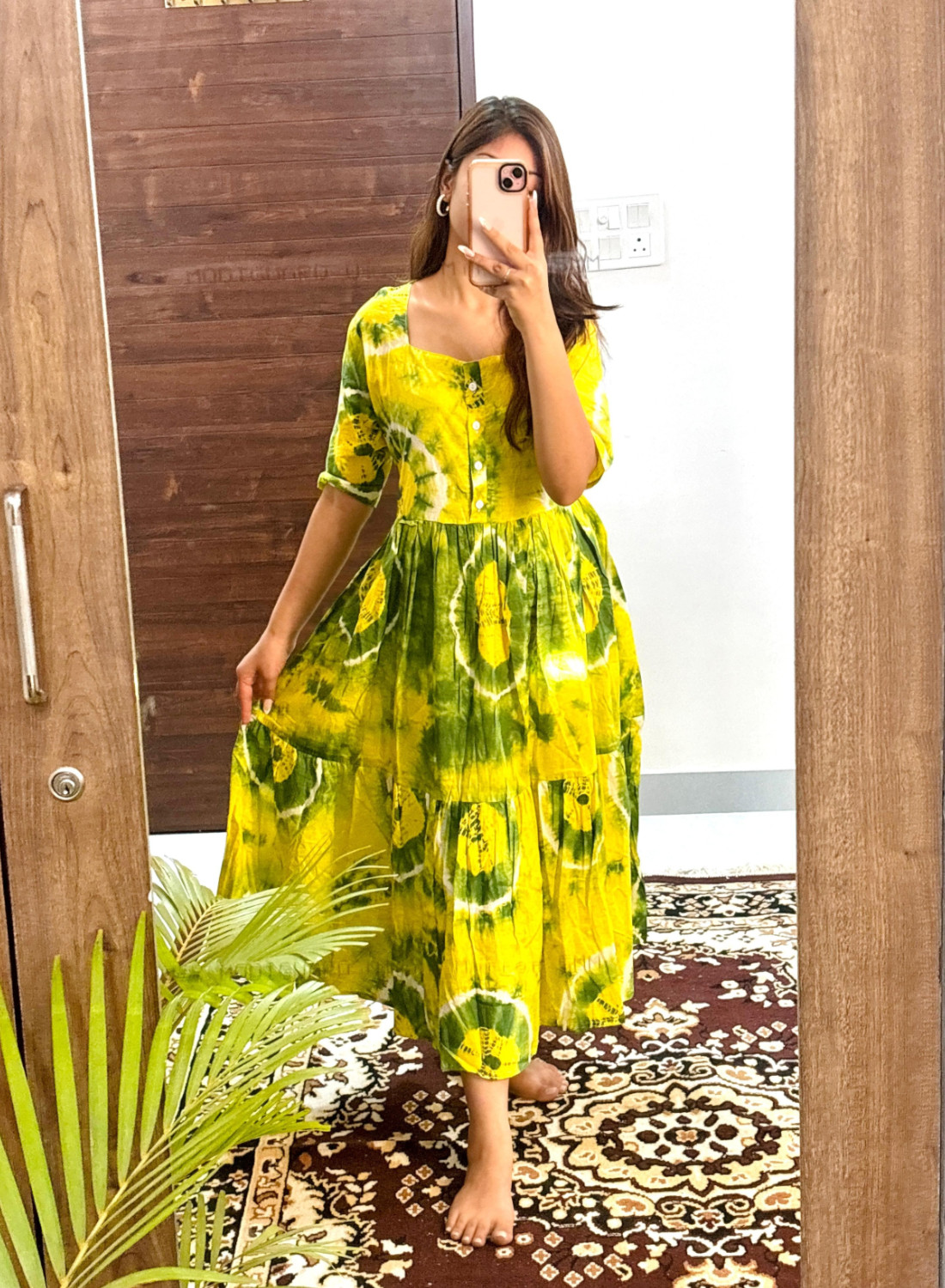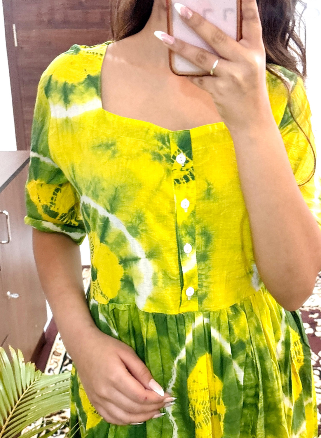 Hazel Yellow Tie Dye Printed Flare Kurti Dress Half Sleeves Midi Gown for Women