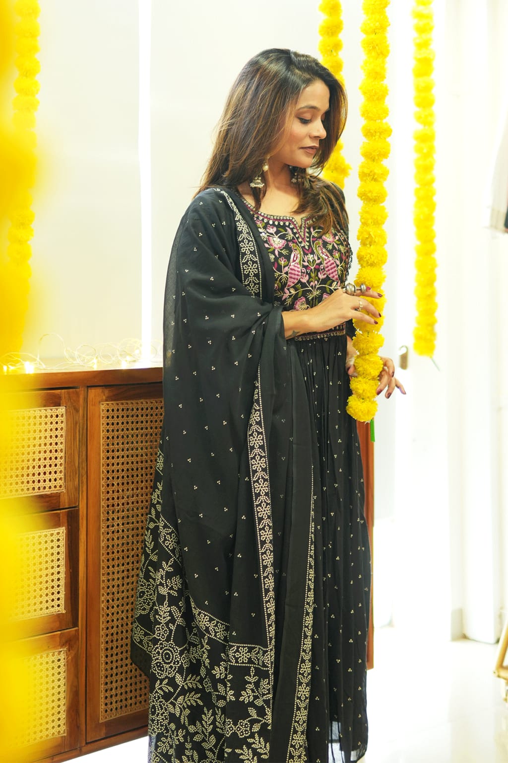 Anarkali Style Embroidered Printed Kurti Pant Dupatta Set Readymade Salwar Kameez