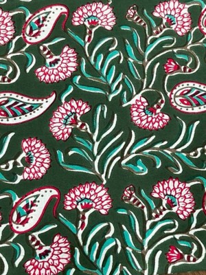 Bottle Green Plain Kantha Work Upholstery Fabric 100% Cotton Dressmaking Craft Quilting Fabric Material