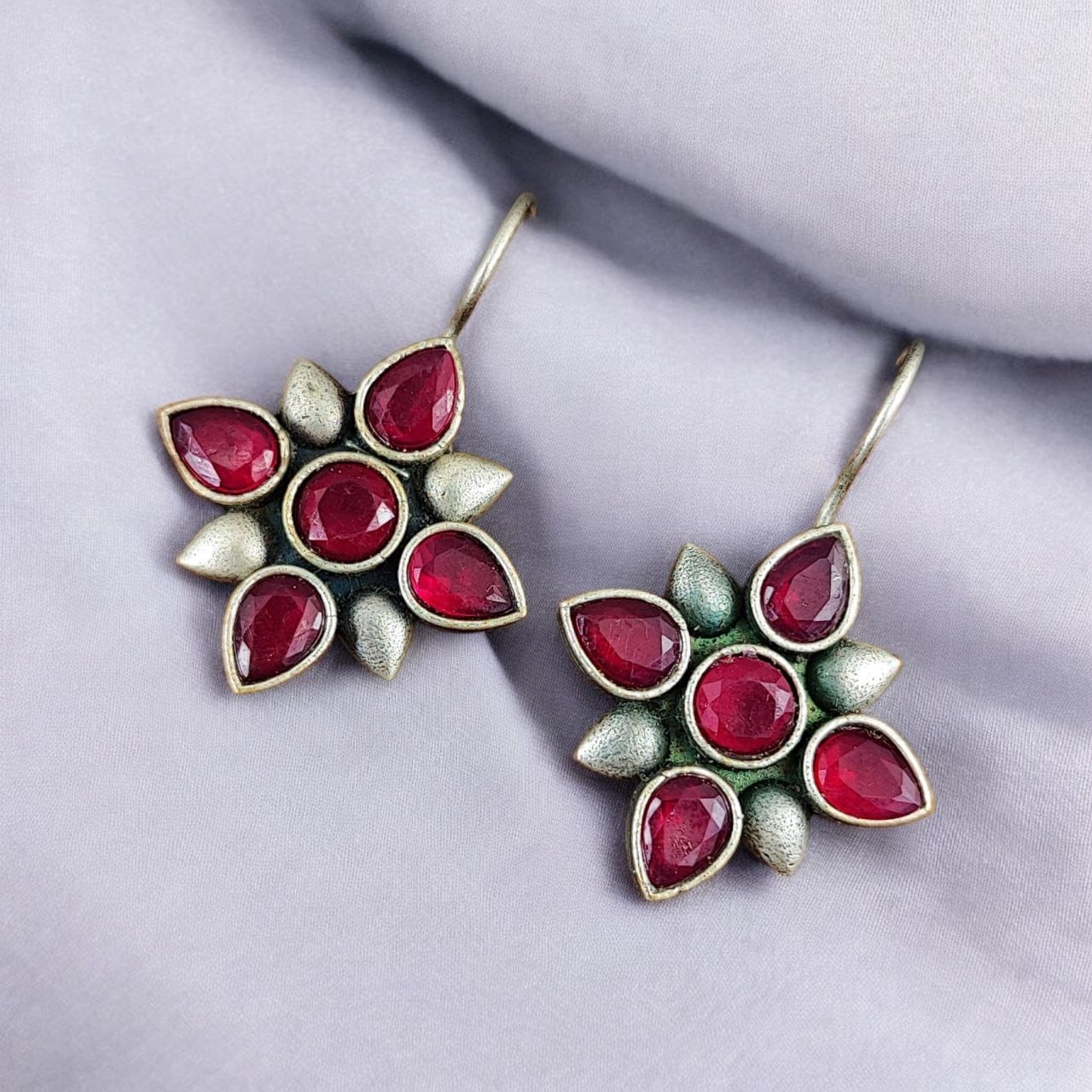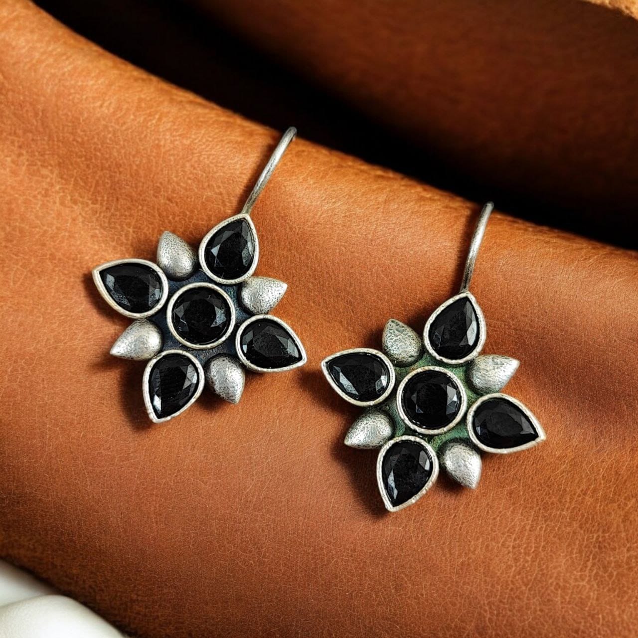 Beautiful Silver-toned Oxidized Earring Hook Drop Ethnic Indian Stonework Earrings for Women