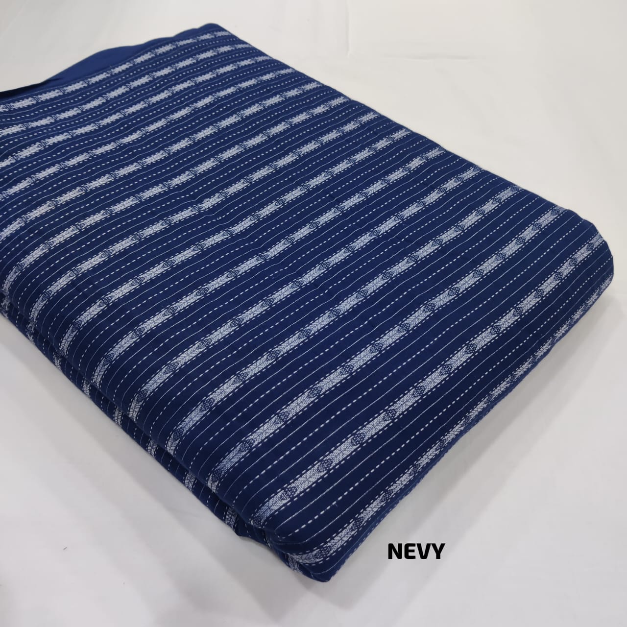 Navy Blue Striped Lining Kantha Work Upholstery Fabric 100% Cotton Dressmaking Craft Quilting Fabric Material