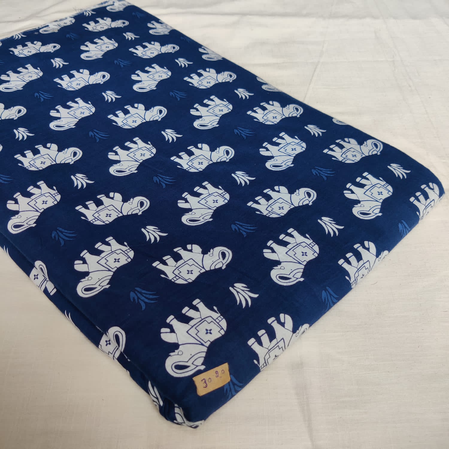 • Blue Color Indian Elephant Printed Hand Block Fabric Cotton Craft Dressmaking Quilting Upholstery Fabric Material