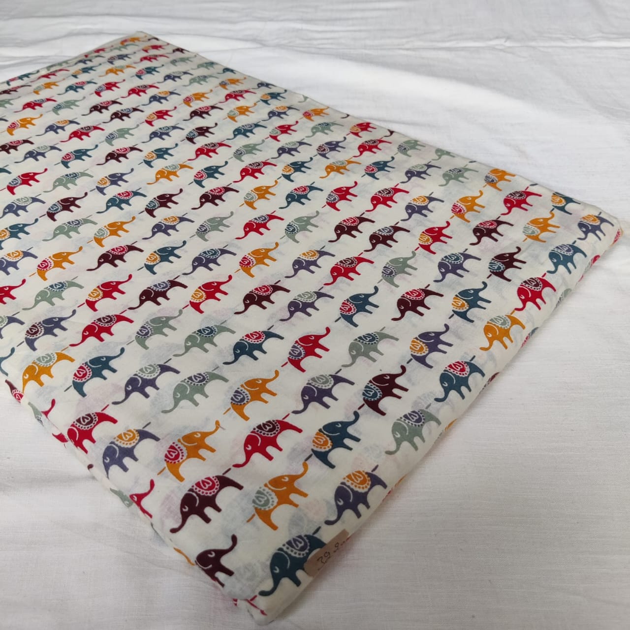 Multi Color Elephants in White Color Elephant Printed Shirt Fabric Cotton Kids Dressmaking Quilting Upholstery Fabrics Material