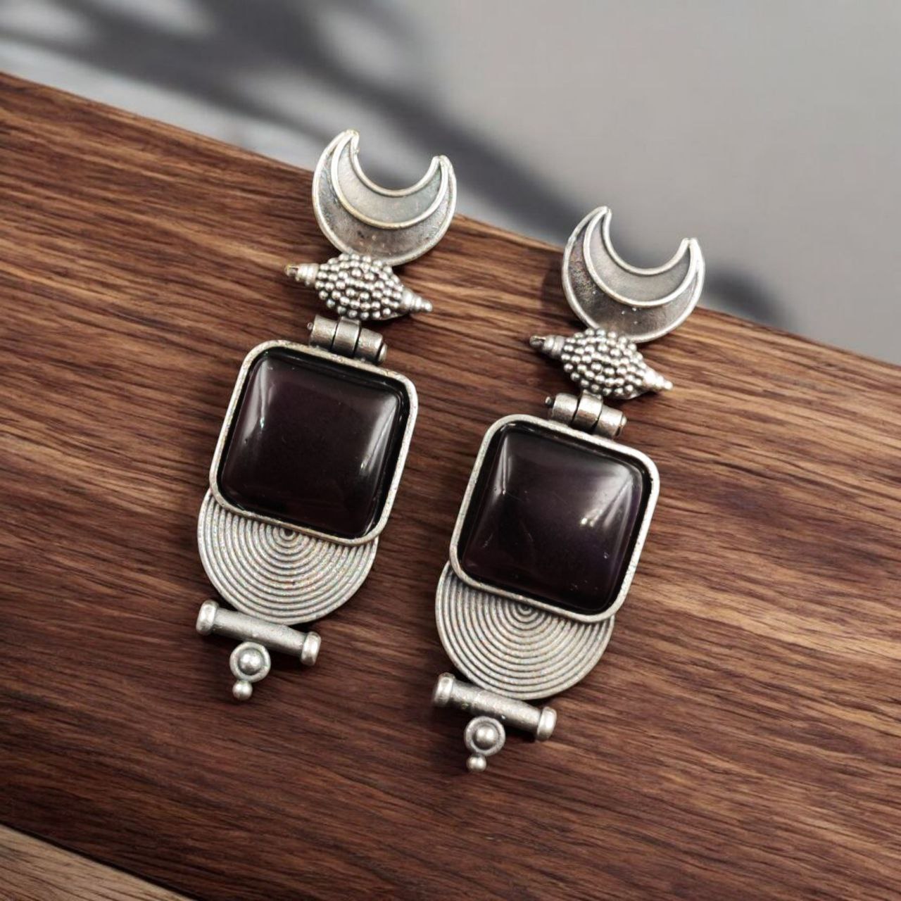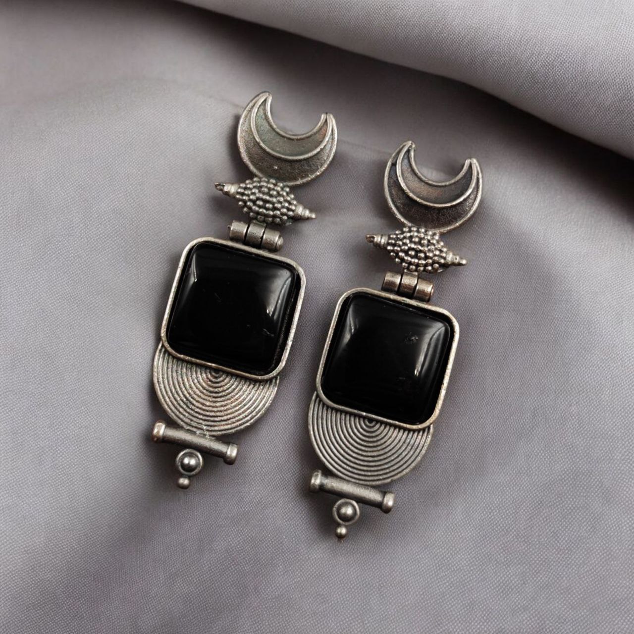 Black Stunning Crescent Moon Designer Silver Oxidized Earring Drop Dangler Monalisa Stone Earrings for Women