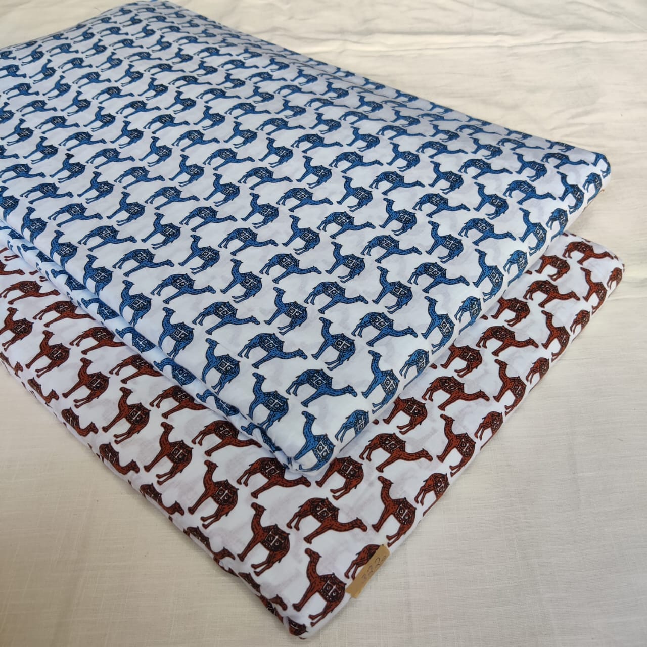 Blue White Camel Printed Shirt Fabric Cotton Kids Dressmaking Quilting Upholstery Animal Print Fabrics Material