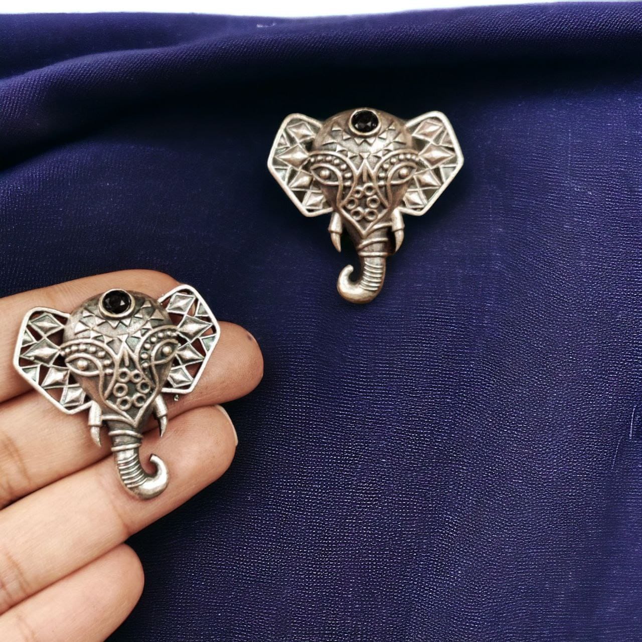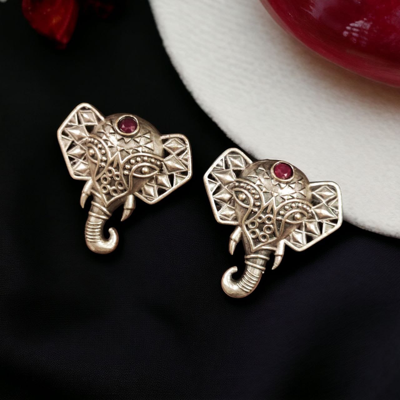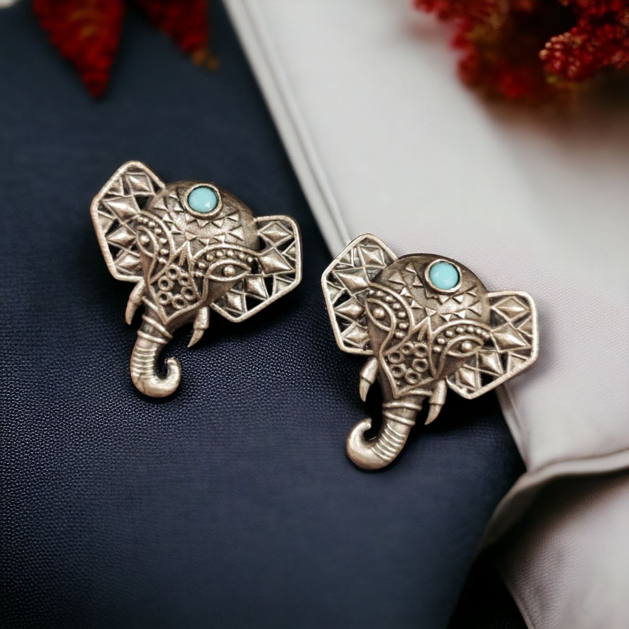 Exquisite Royal South Asian Elephant Silver Oxidized Earring Stud Top Boho Tribal Jewellery for Girls