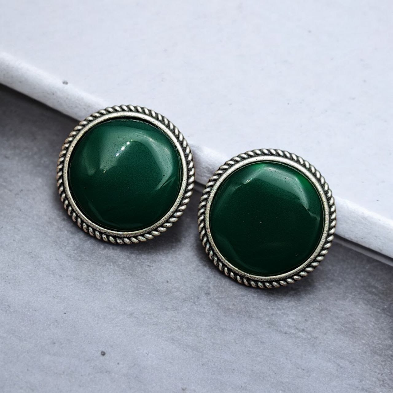 Green Attractive Round Shaped Monalisa Stone Stud Tops Earring Silver Earring Set for Casual Wear