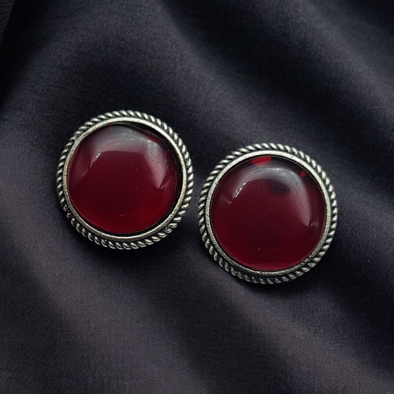 Red Attractive Round Shaped Monalisa Stone Stud Tops Earring Silver Earring Set for Casual Wear