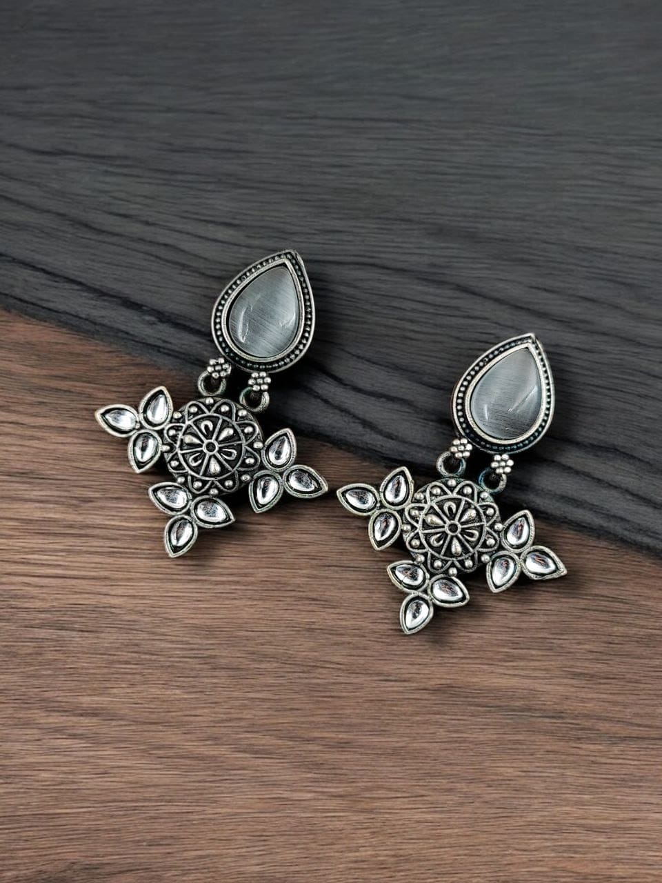 Grey Beautiful Ethnic Monalisa Stone Stud Earring Stud Indian Silver-Toned Earring Set Gift for Her