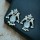 Black Dainty Birds Rustic Silver Oxidized Monalisa Stone Stud Earring Set with Pearl Beads Drop