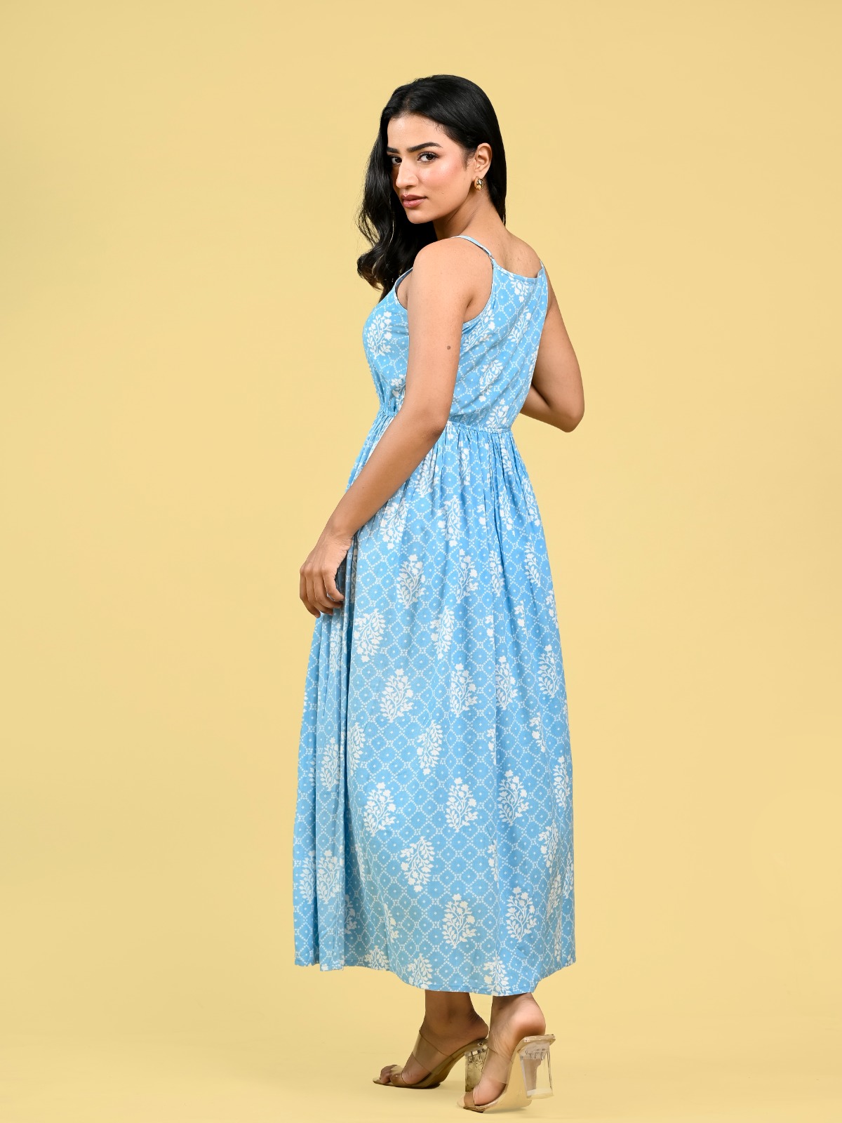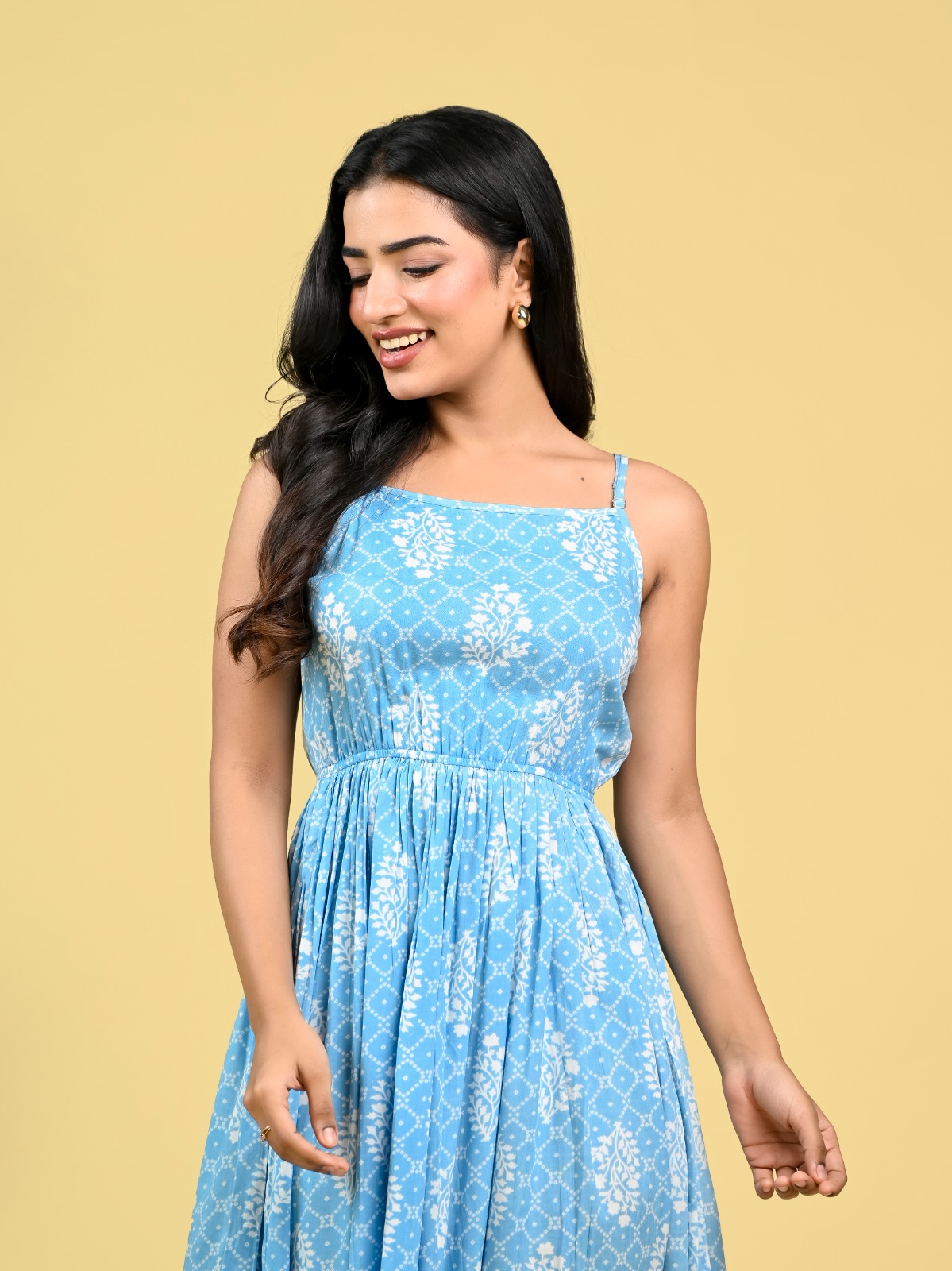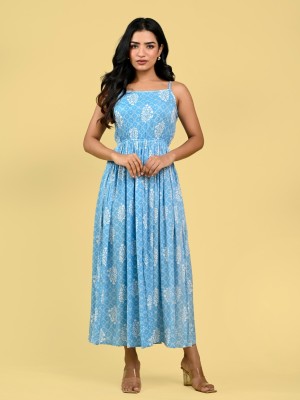 • Grey Western Spaghetti Kurti Partywear Rayon Anarkali Gown Maxi Strap Dress