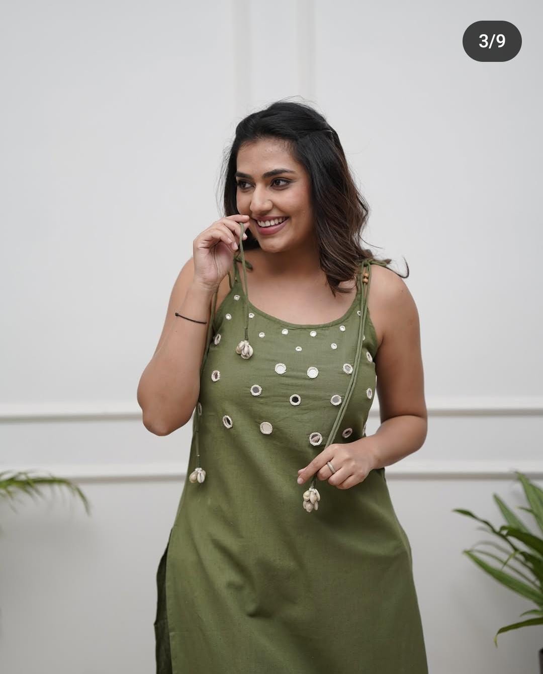 Green Western Style Spaghetti Kurti Pant Set Partywear Cotton Modern Salwar Kameez Strap Dress