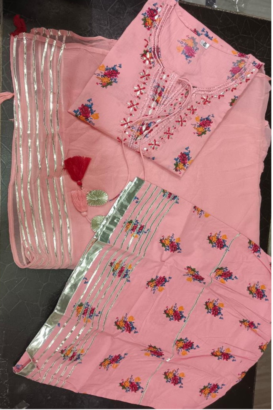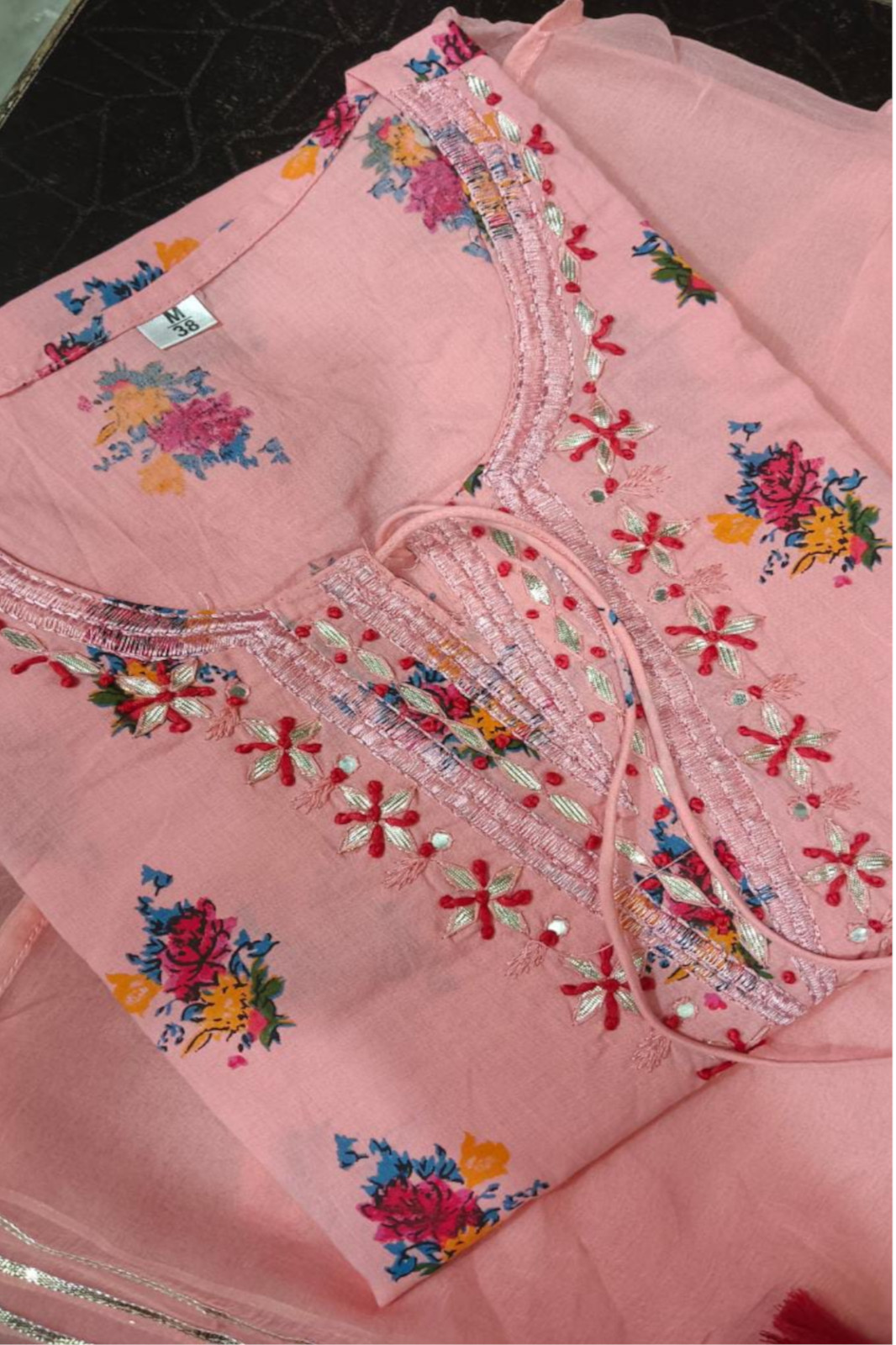 Baby Pink Designer Cotton Kurti Sharara Dupatta Set Kurti Heavy Salwar Kameez