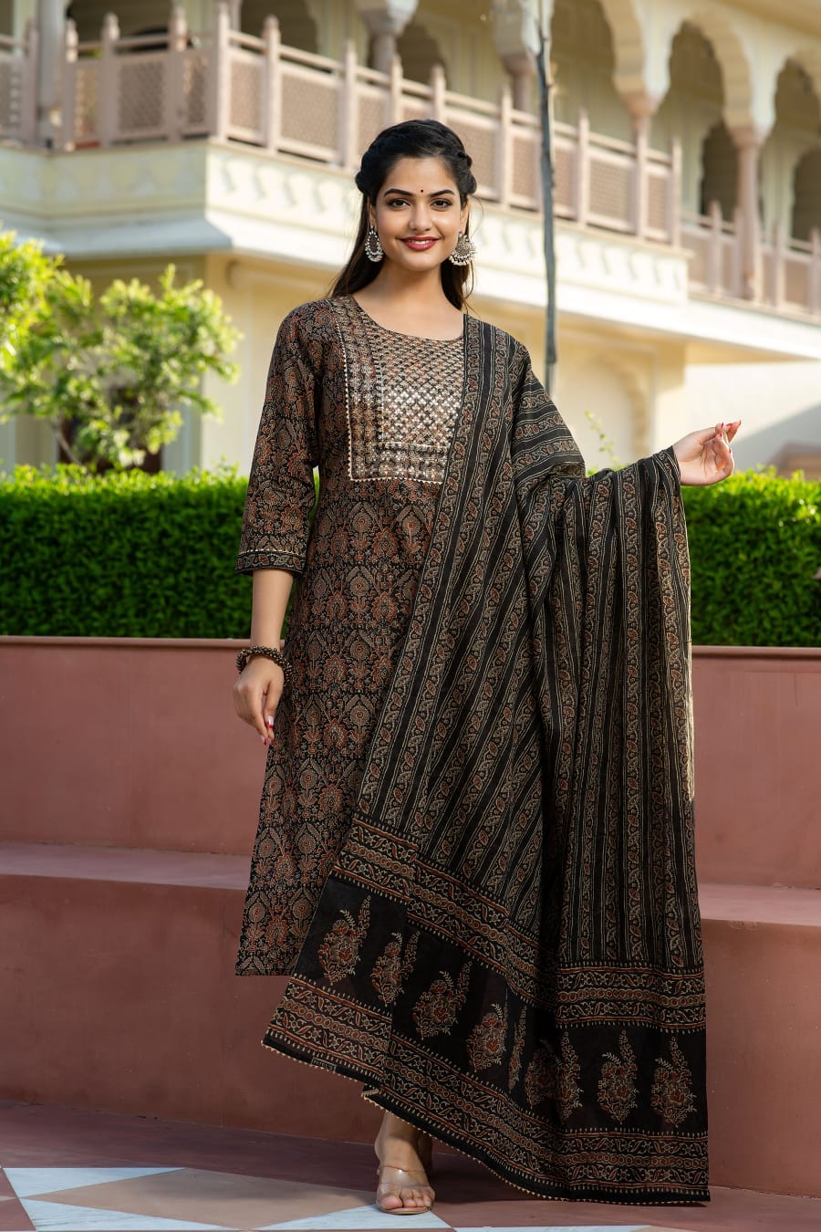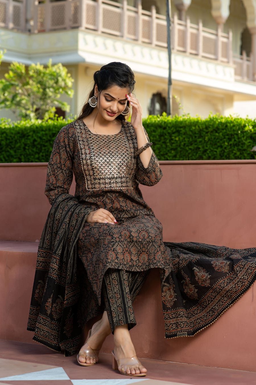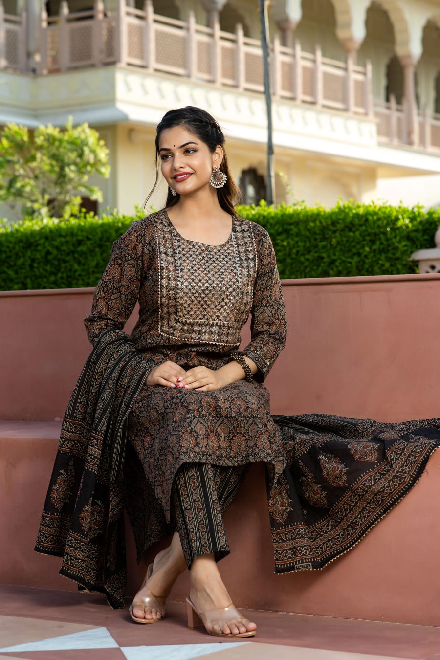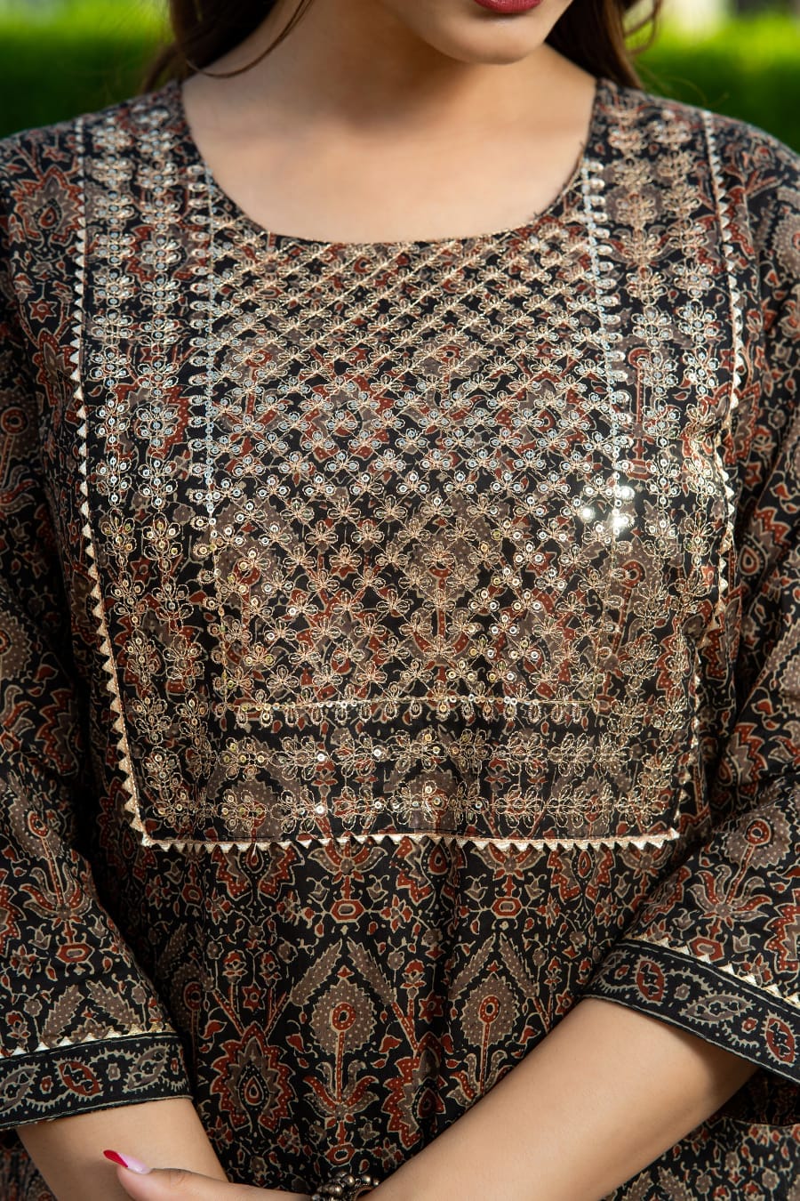 Work: Sequence & Zari Embroidery Work On Yoke & Gotta Detailing On Sleeves And Slit