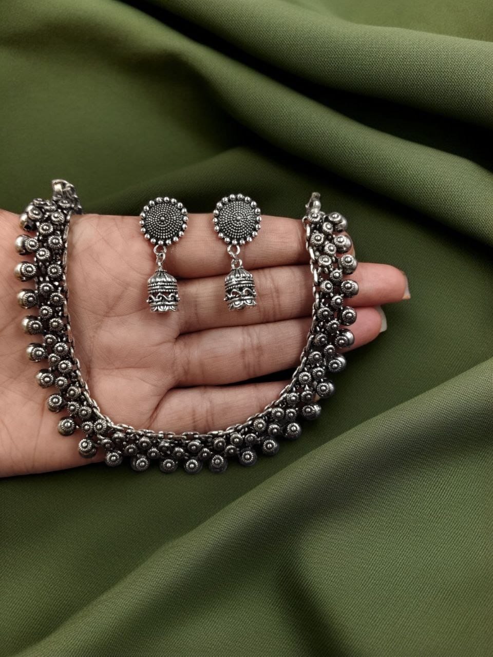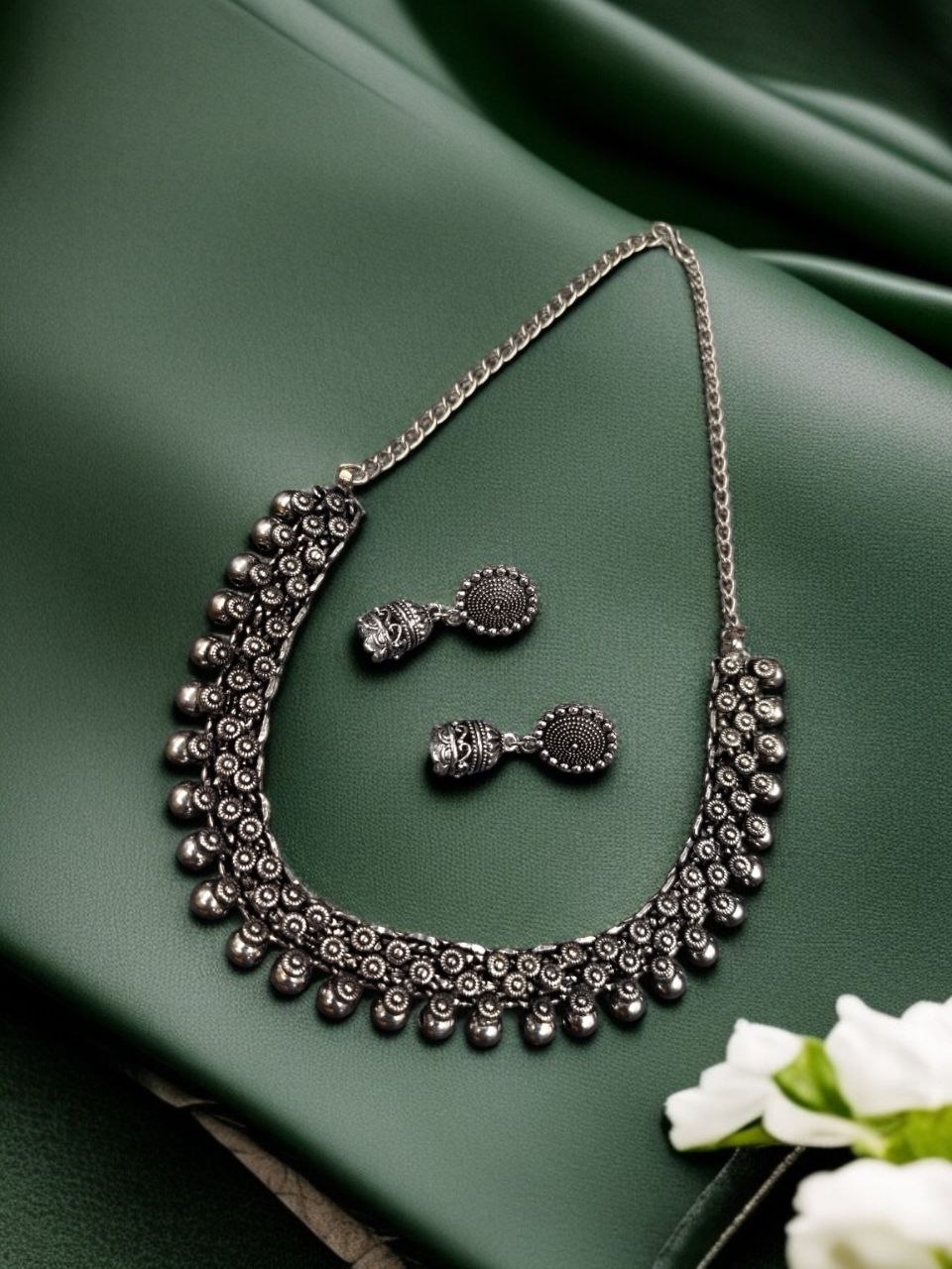 Gypsy Afghani Stunning Traditional Silver Oxidized Necklace Light Weight Choker with Jhumki Set for Girls