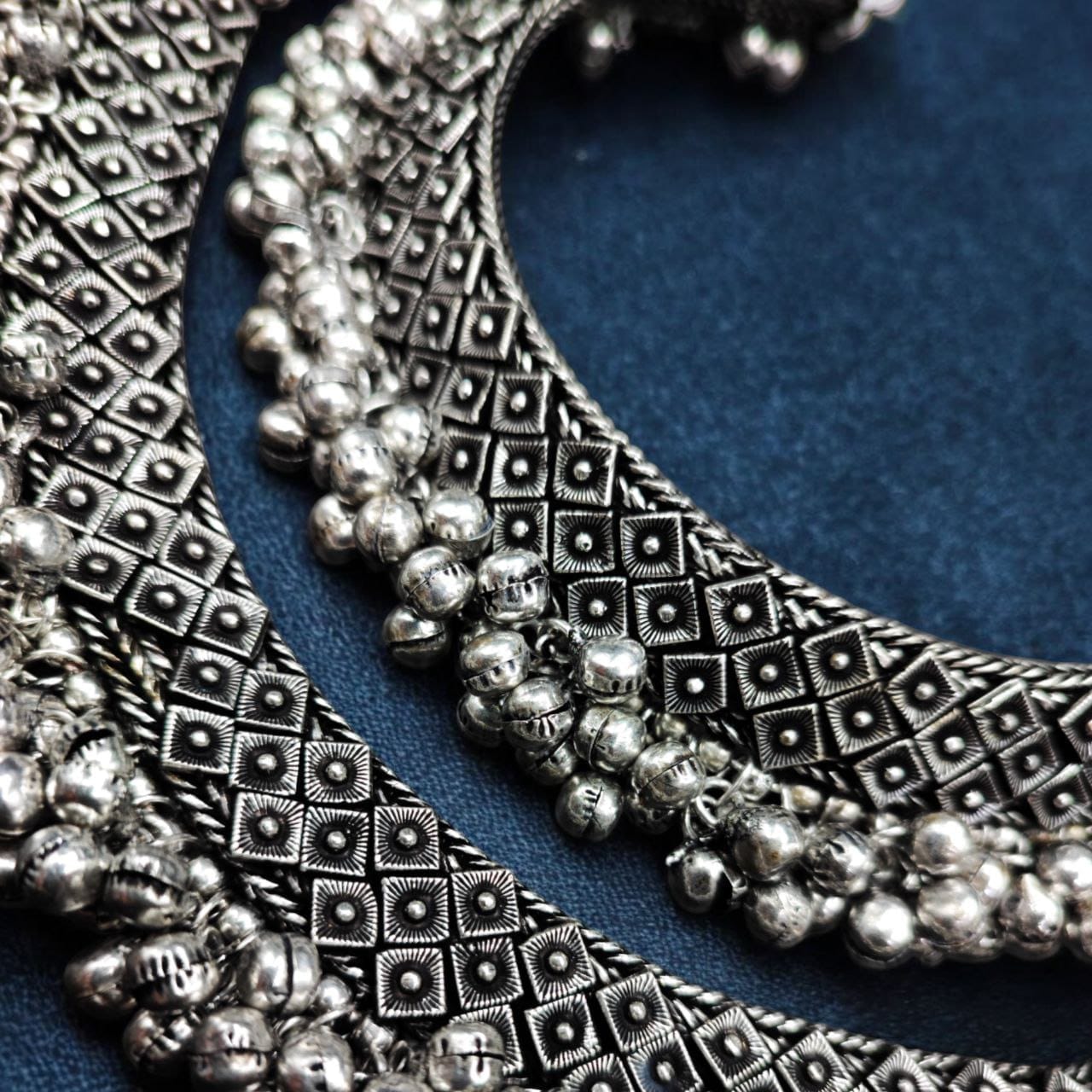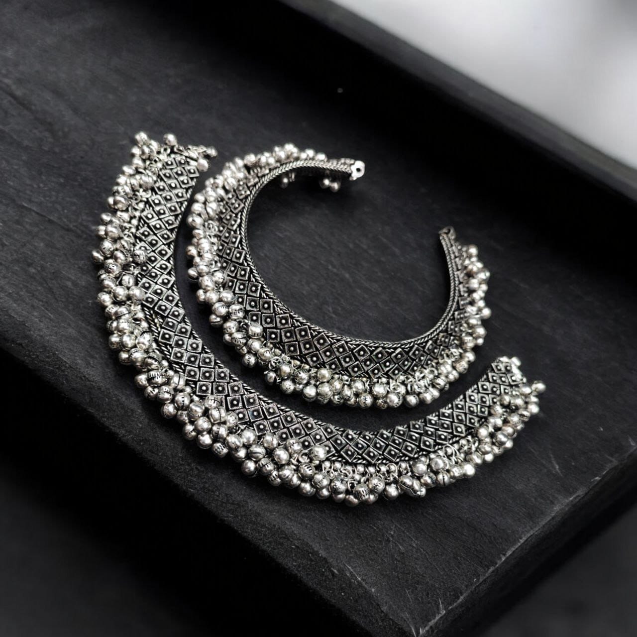 Classic Indian Traditional Silver Oxidised Anklet Indian Sound Ghunghroo Bells Payal Foot Jewlery