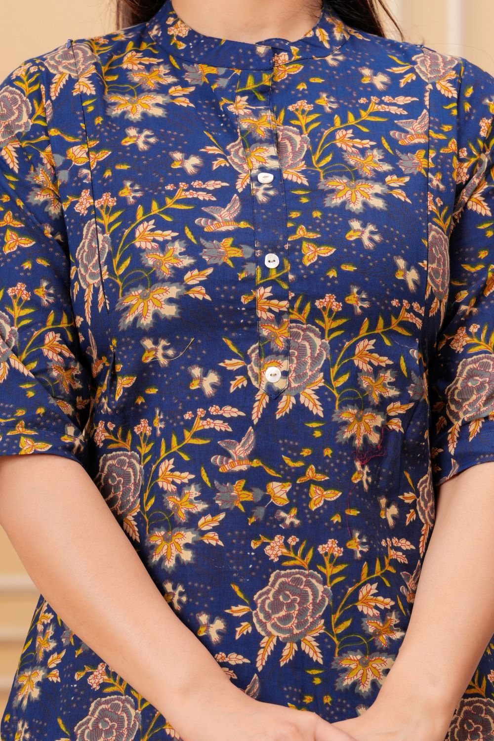 • Pink Blue Daily Wear Floral Print Cotton Maternity Co Ord Set For Baby Milk Feeding Top with Hidden Feeding Zip (Set of 2)