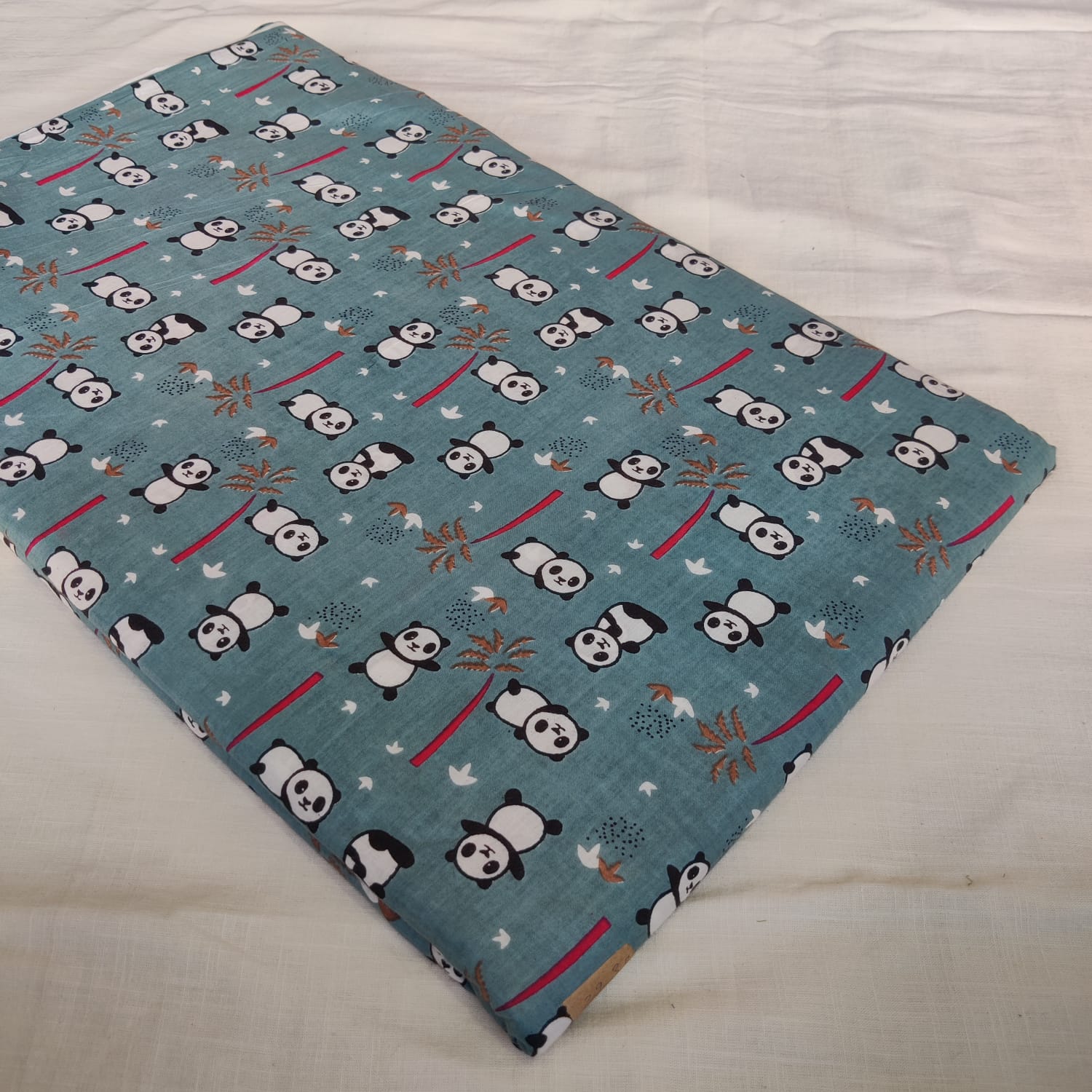 Sea Green Panda Cotton Apparel Quilting Fabric by the Yard Cute Animal Pattern for Kids & Nursery Decor Fabric
