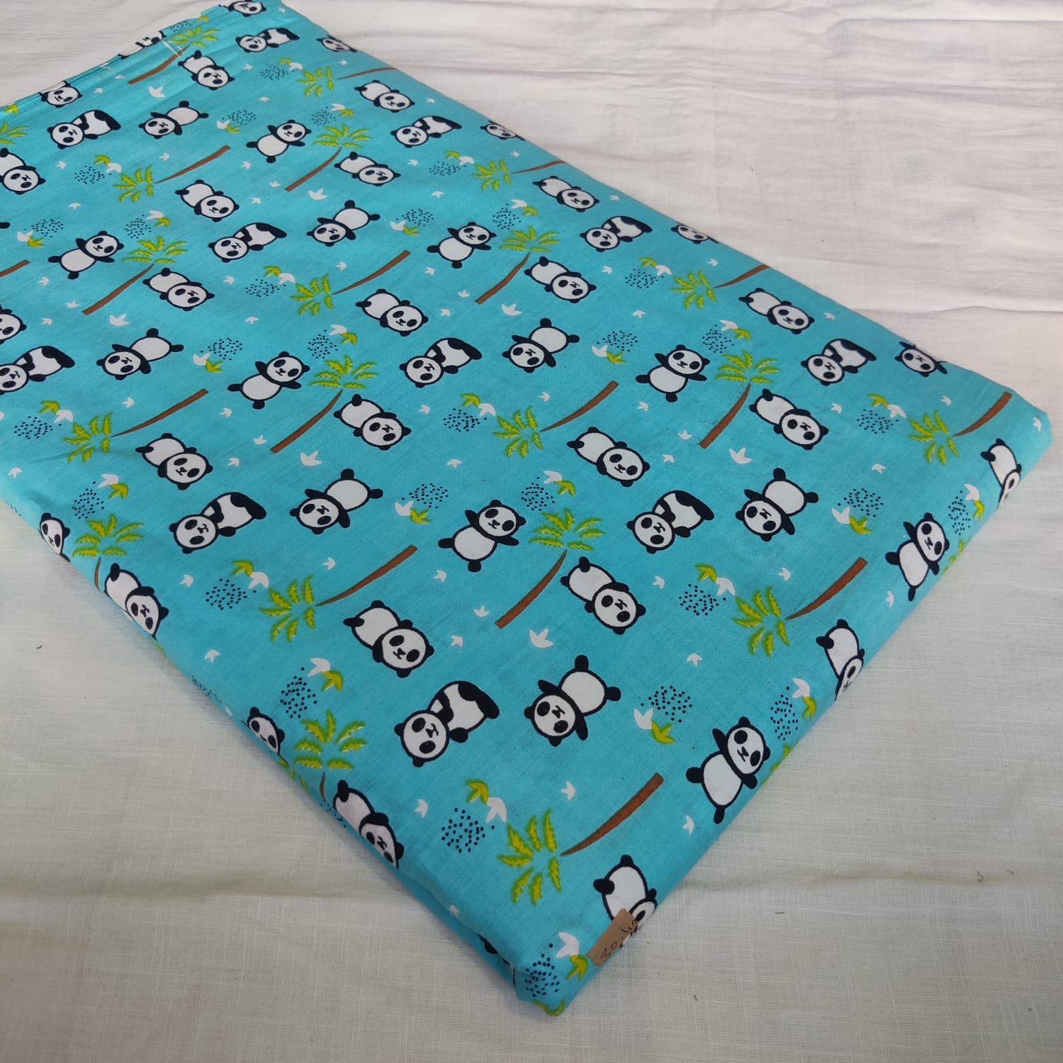 Turquoise Panda Cotton Apparel Quilting Fabric by the Yard Cute Animal Pattern for Kids & Nursery Decor Fabric