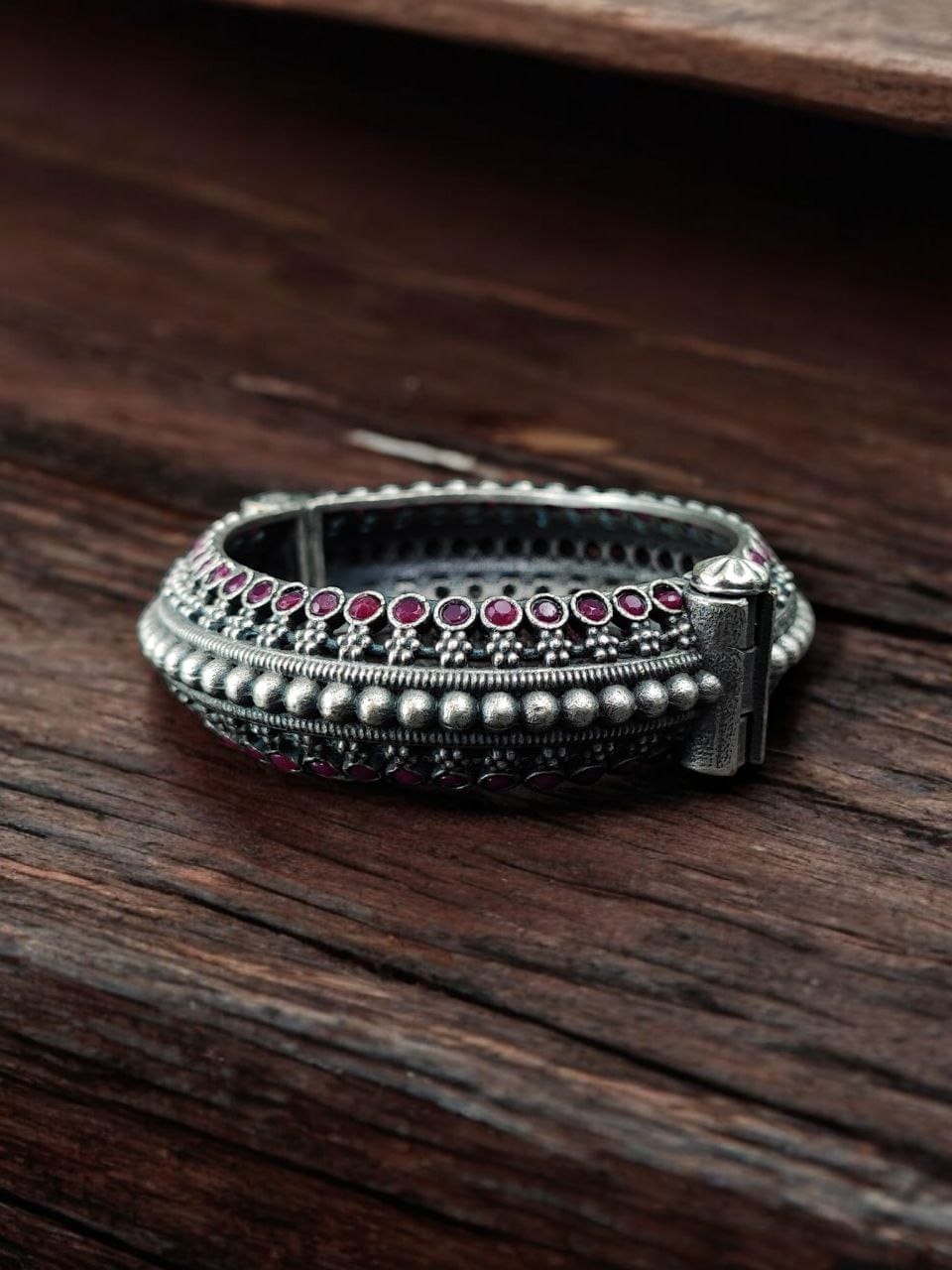 Babypink Attractive Bollywood Style Stonework Silver Oxidised Bracelet Kada Openable Free Size Kangan Bangle