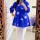 • Blue Floral Embroidered Cotton Collared Short Button Kurti Top Pant Set