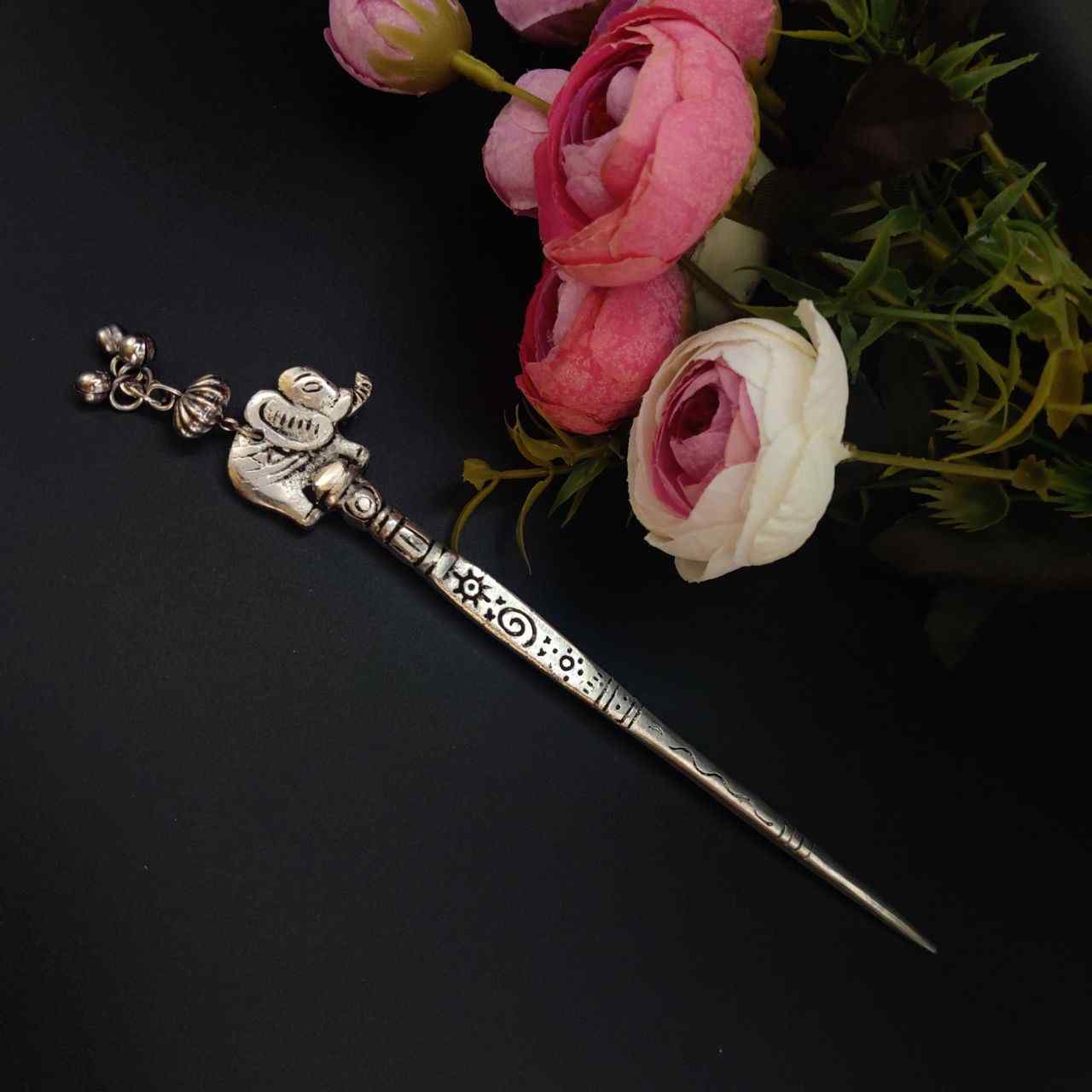Traditional Elephant Silver-Plated Hair Pin Bun Holder Pin Boho Chic Hair Stick Hair Jewelry for Women