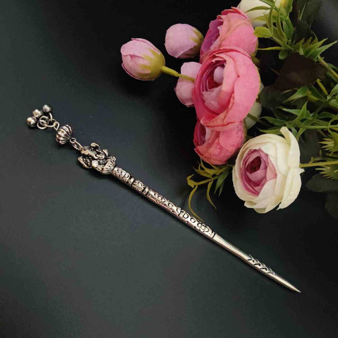 Unique Ganesha Silver-Plated Hair Pin Bun Holder Handmade Hair Stick Hair Gypsy Jewelry for Girls