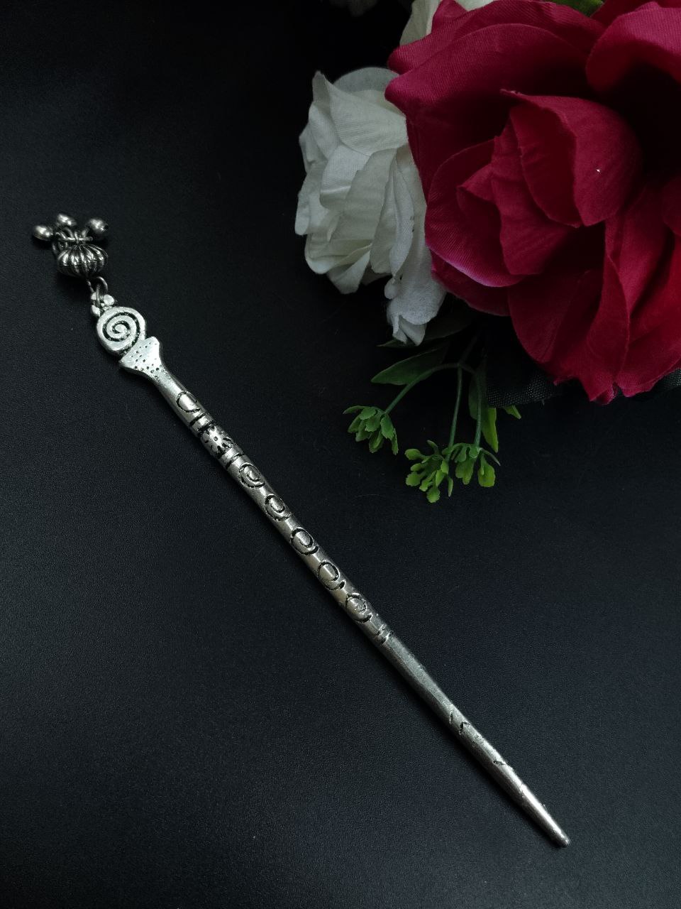 Classic Designer Silver Plated Oxidized Hair Pin Bun Holder Metal Hair Stick Boho Hair Accessories