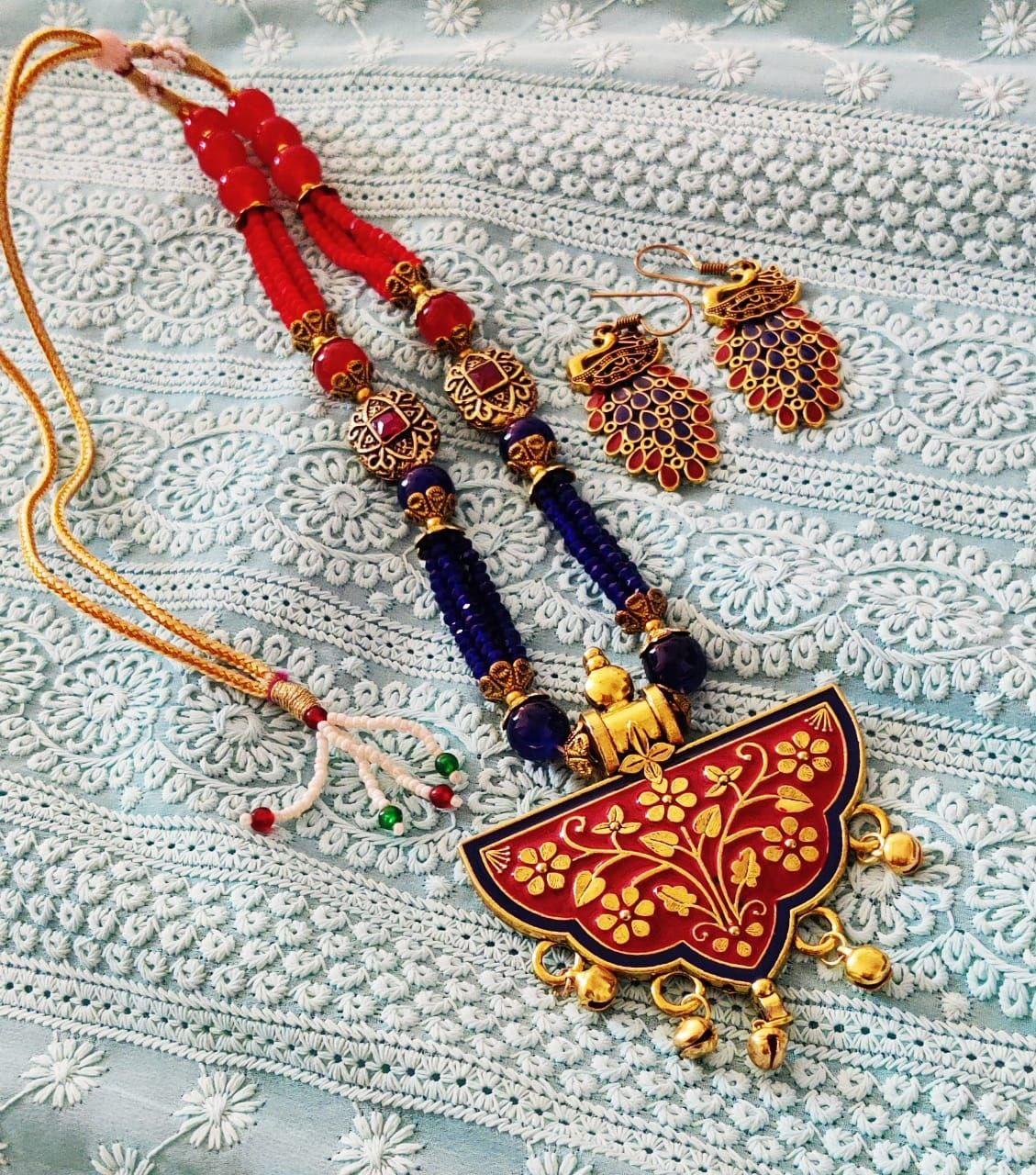 Mughal Indian Long Islam Pendant Necklace Earrings Set Afghani Oxidized Fashion Jewelry