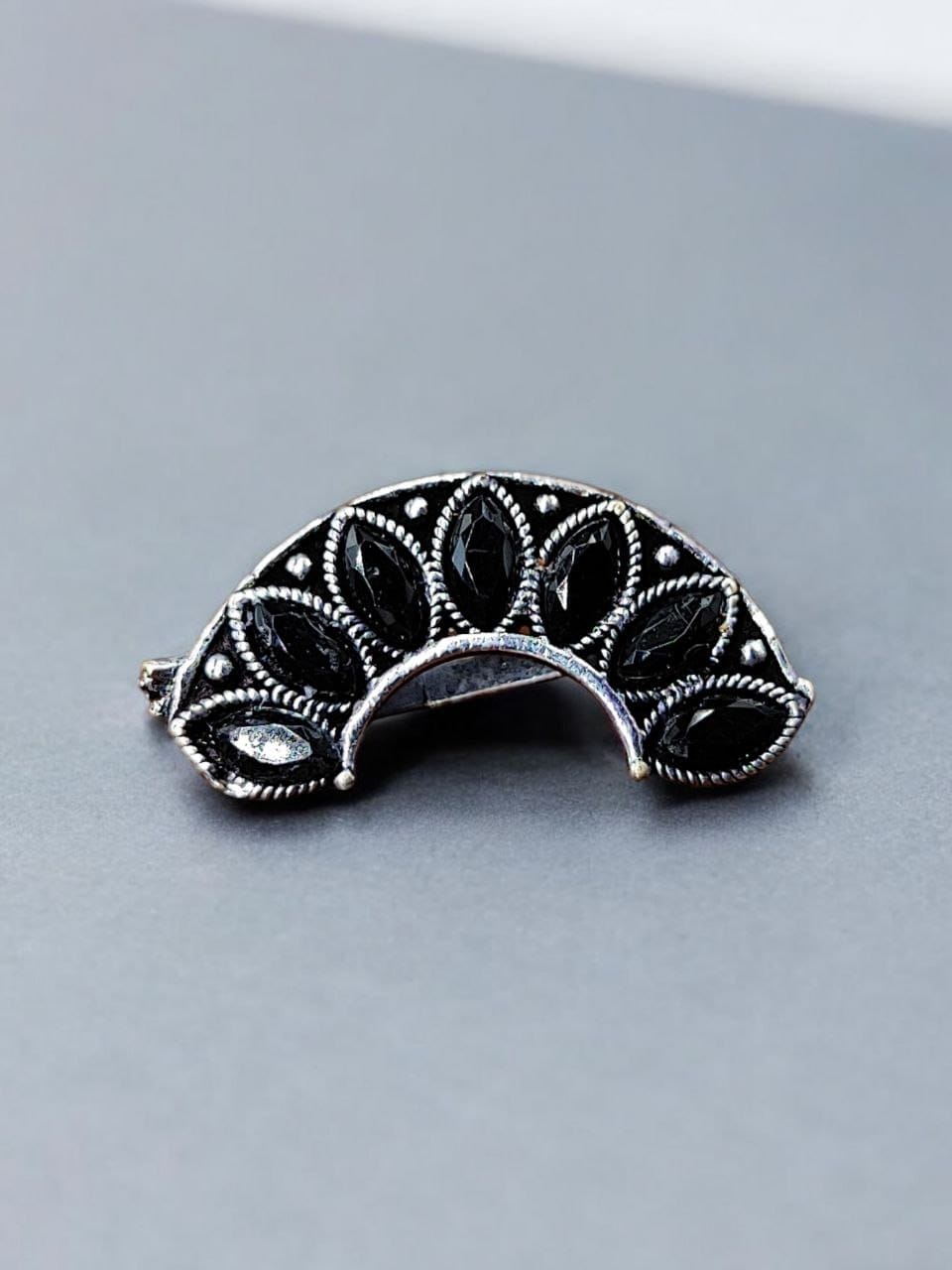 Black Stonework Marathi Nath Oxidized Silver Maharashtrian Nose Pin Non-Piercing Adjustable Jewelry