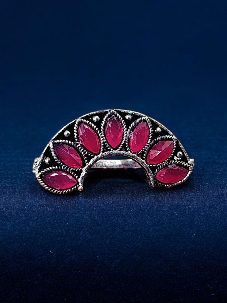 Pink Stonework Marathi Nath Oxidized Silver Maharashtrian Nose Pin Non-Piercing Adjustable Jewelry