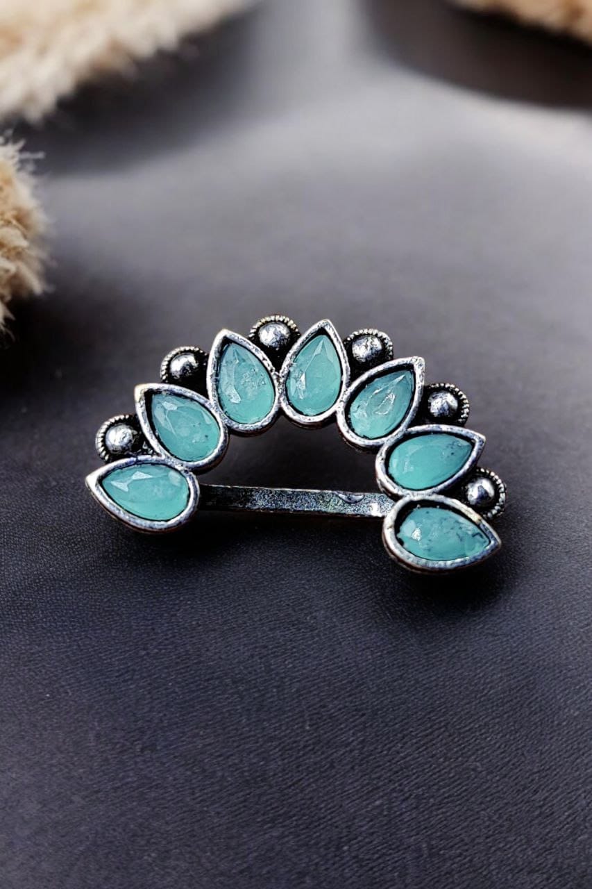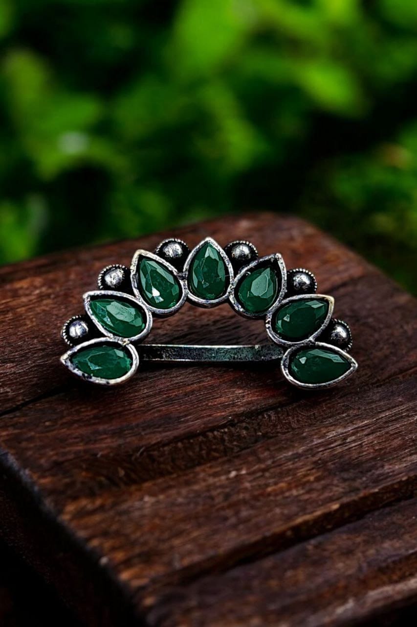 Green Beautiful Marathi Nath Silver Plated Ethnic Maharashtrian Nose Pin Non-Piercing Adjustable Jewelry