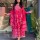 • Red Color Printed Anarkali Flare Style Kurti Pant Dupatta Set Cotton Salwar Kameez Suit Online for Women