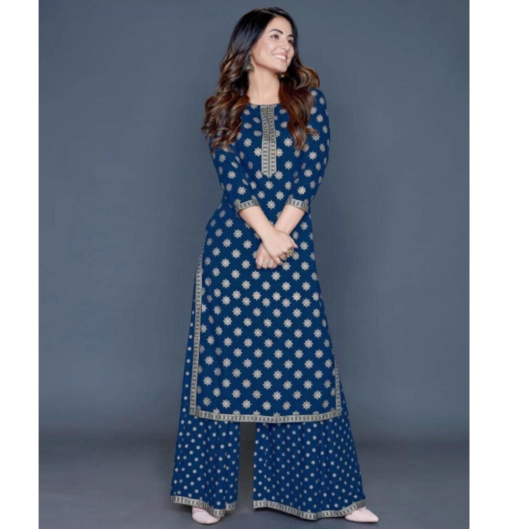 Blue Pakistani Readymade Salwar Kameez Set Indian Designer Palazzo Kurta Suit Set Top