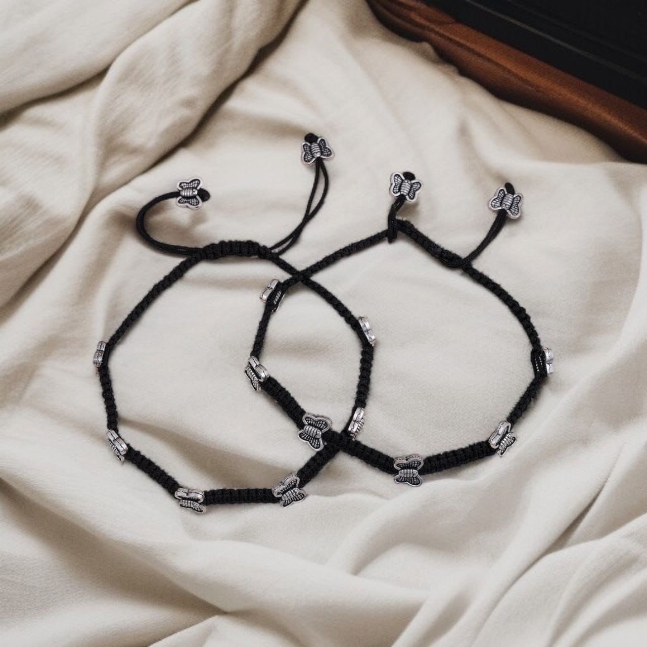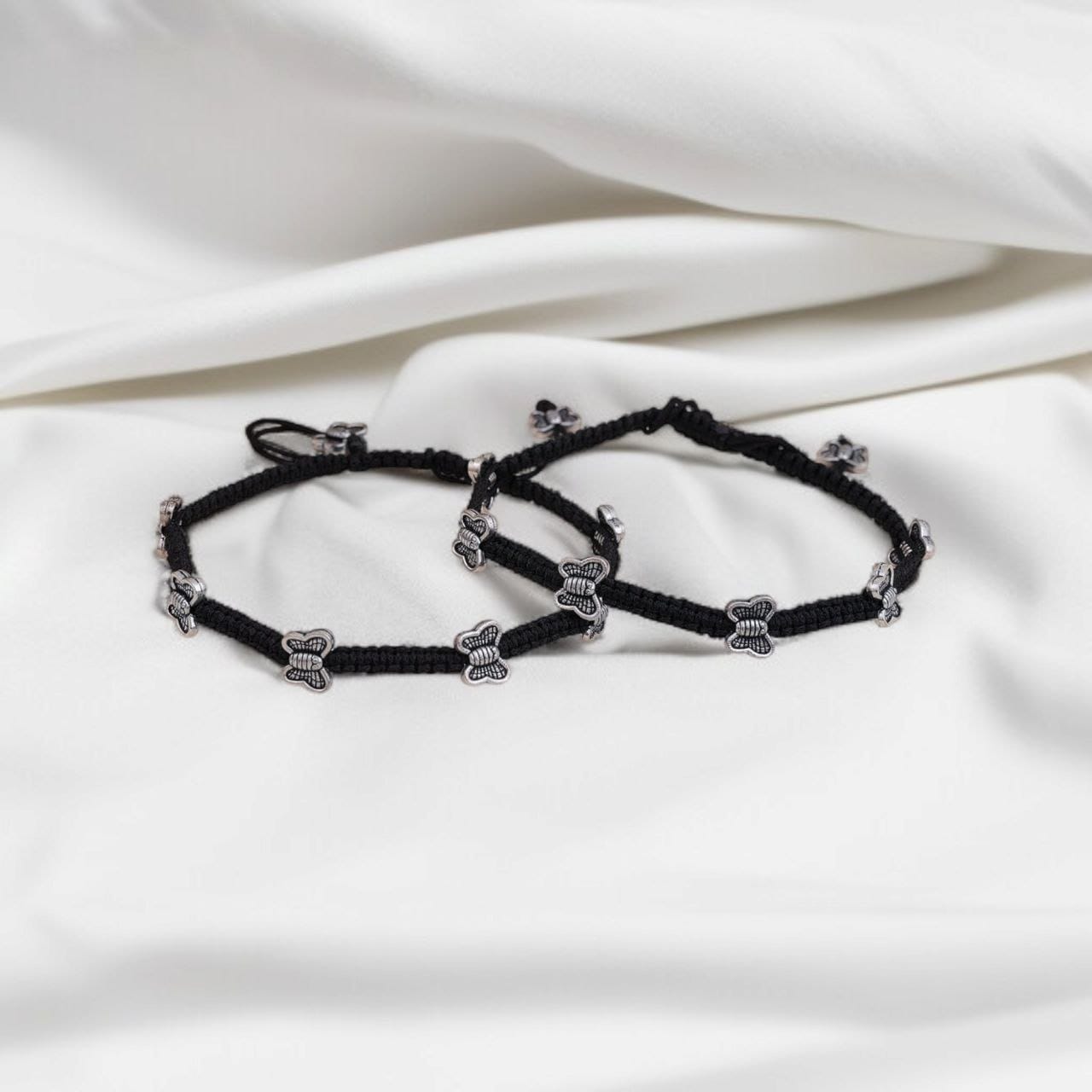 Elegant Black Thread Work & Butterfly Charms in German Silver Daily Wear Anklets for Girls