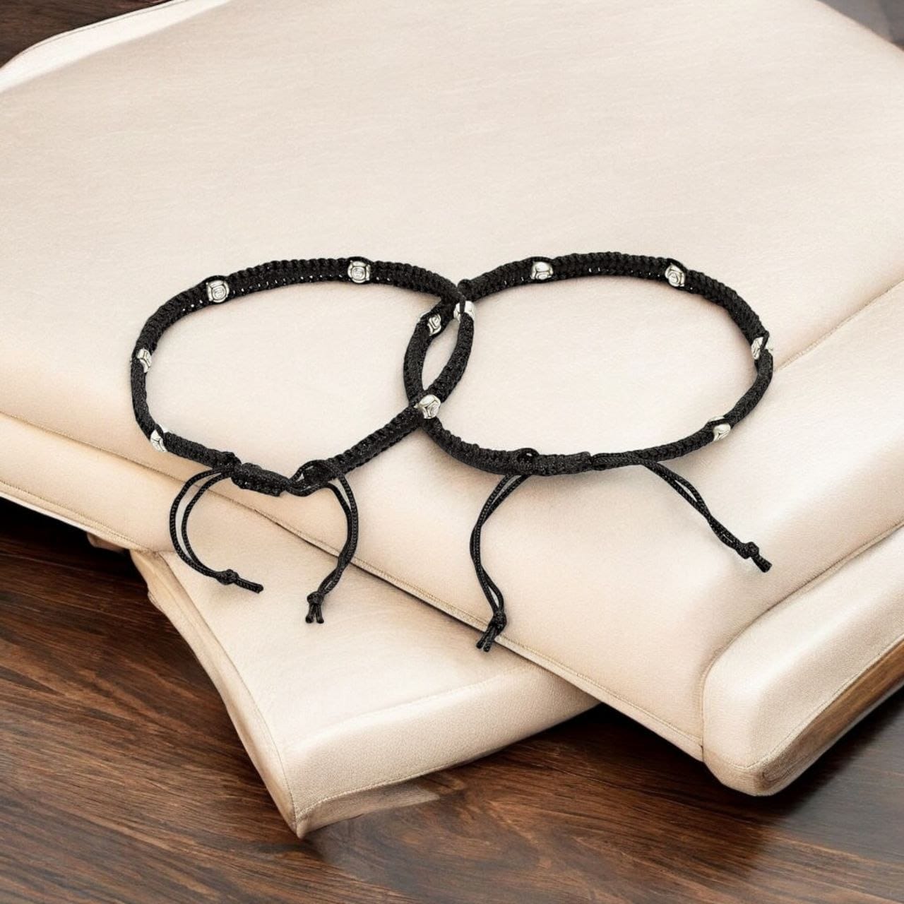 Beautiful Black Thread Work Flower Charms in German Silver Daily Wear Anklet Nazariya for Girls