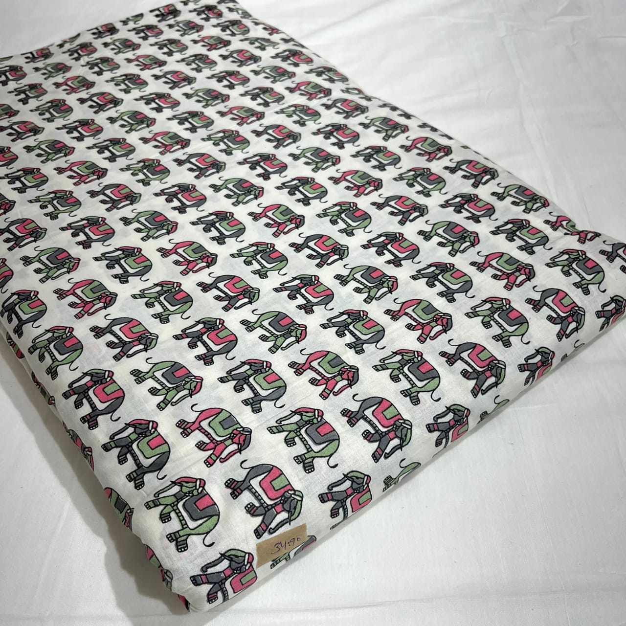 Immerse yourself in Indian heritage with this White Color Elephant Printed Running Fabric. Made from 100% cotton, it features exquisite, hand-printed elephant designs. Perfect for dressmaking, quilting, and upholstery, this fabric offers both durability and comfort. Whether creating stylish garments, cozy quilts, or unique home decor, this fabric adds an authentic touch of Indian artistry to your projects. Unleash your creativity with this versatile and high-quality fabric.