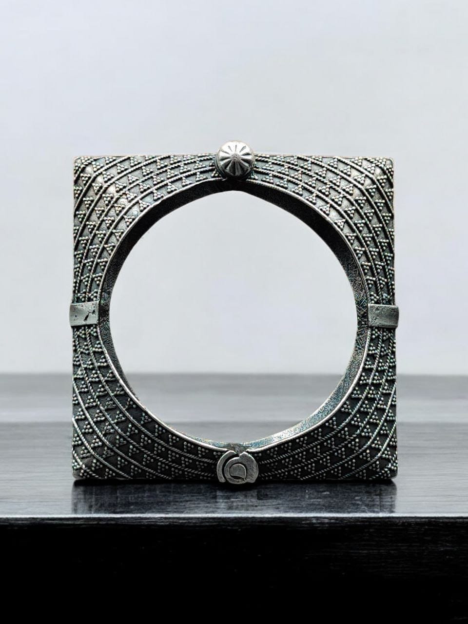 Gypsy Indian Silver Oxidised Bracelet Square Shaped Kada Openable Free Size Kangan Bangle for Women