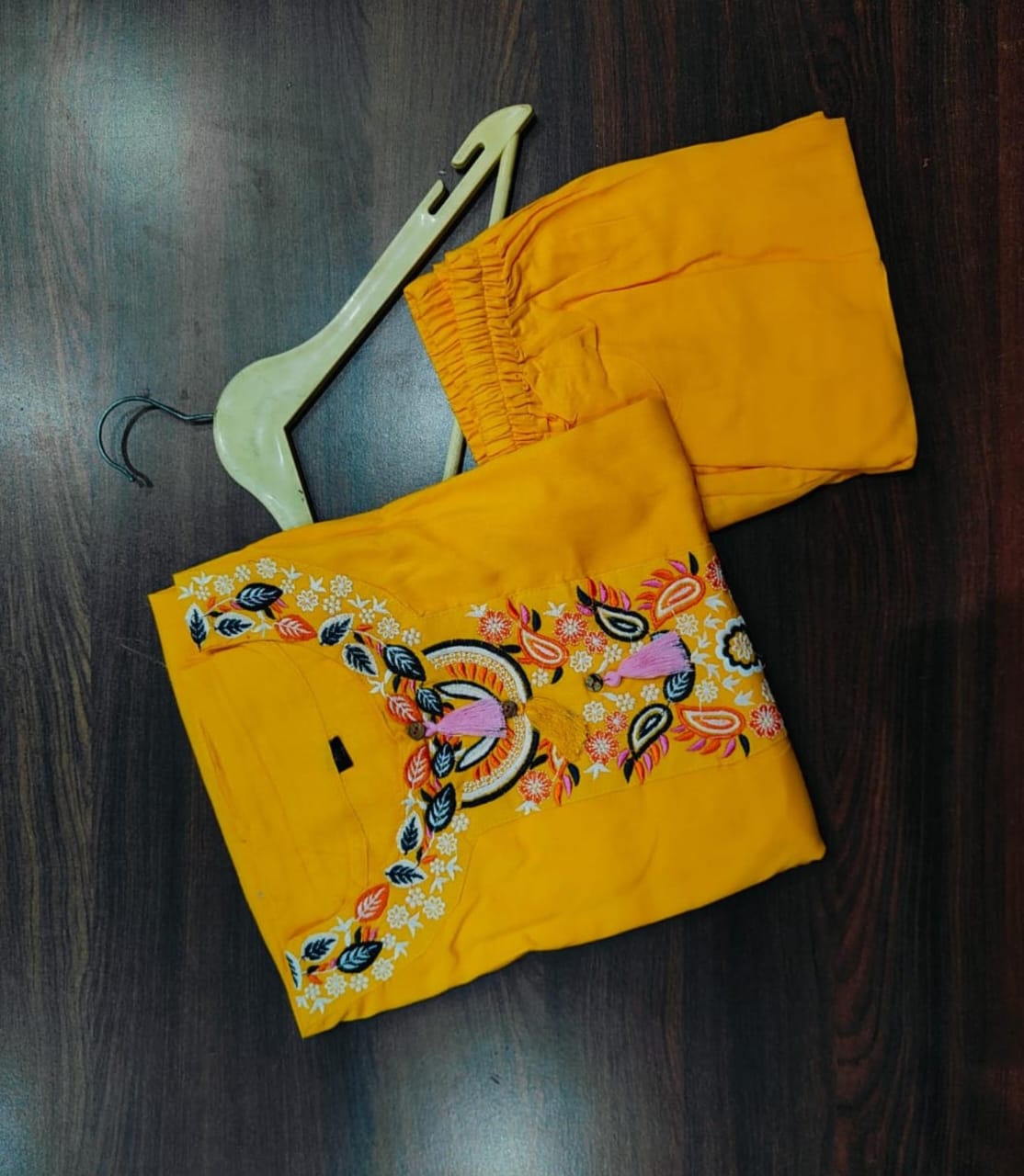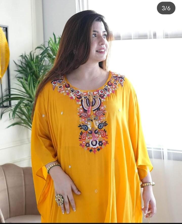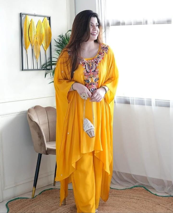 Tanmaya Yellow Embroidery Work Kaftan Pant Set Ethnic Salwar Kameez