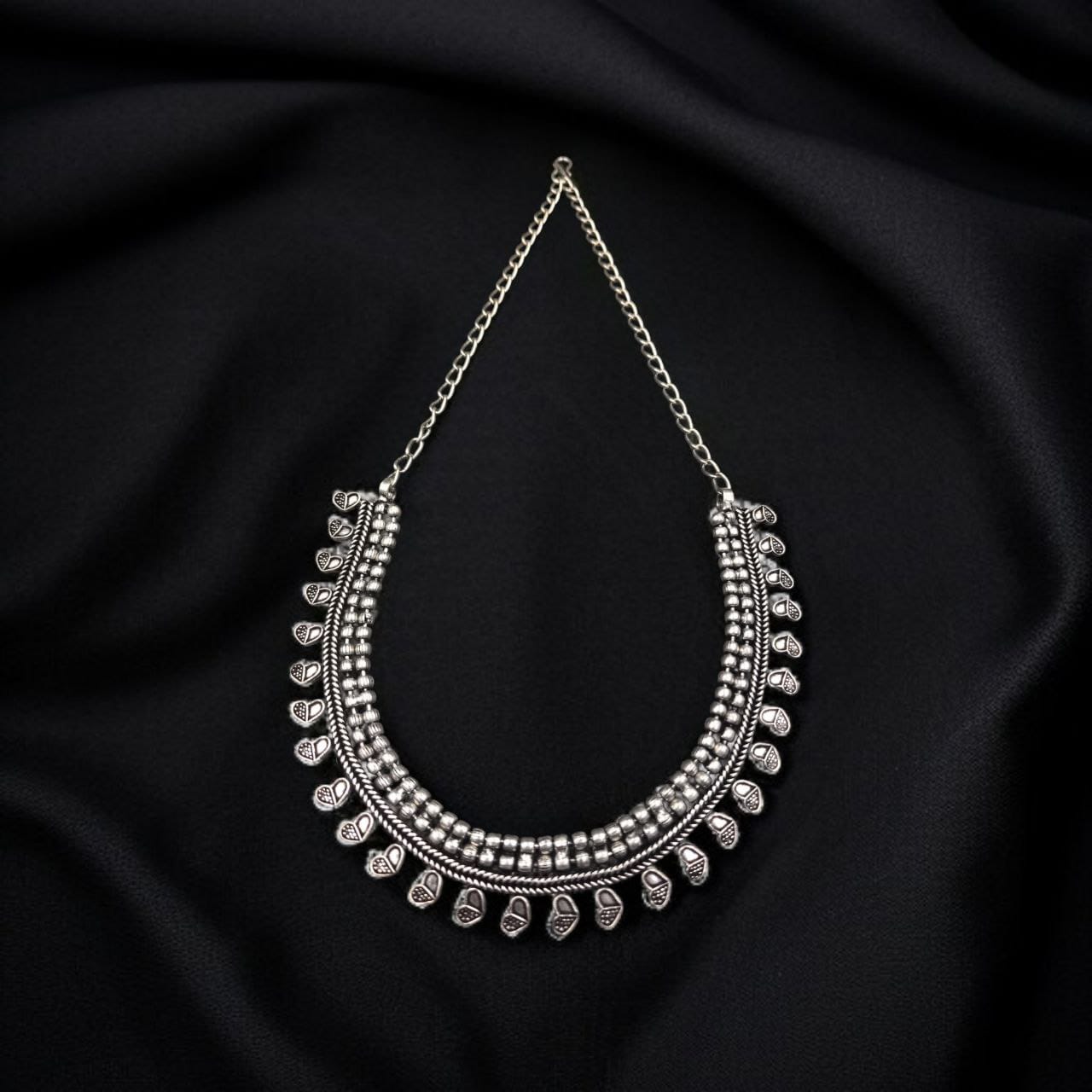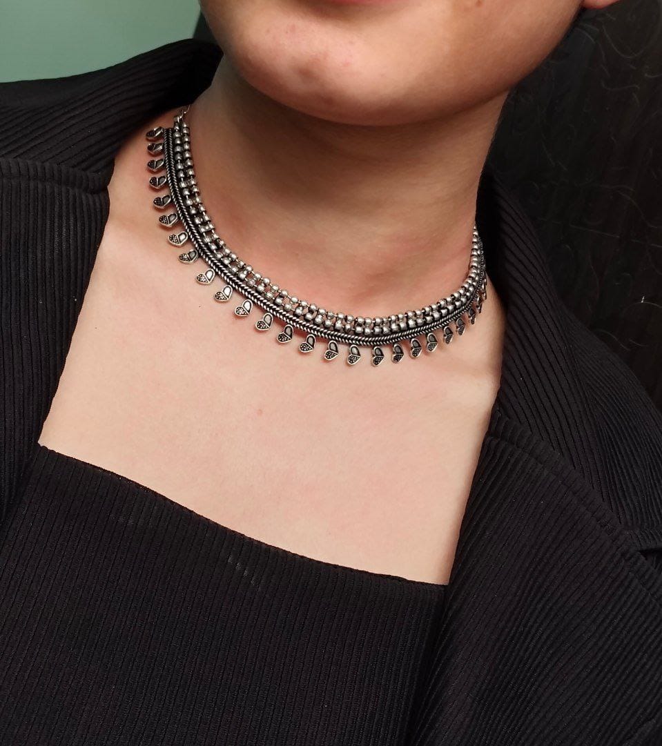 Stunning Mini Heart Choker Bohemian Silver Oxidized Necklace Light Weight Ethnic Jewellery for Girls