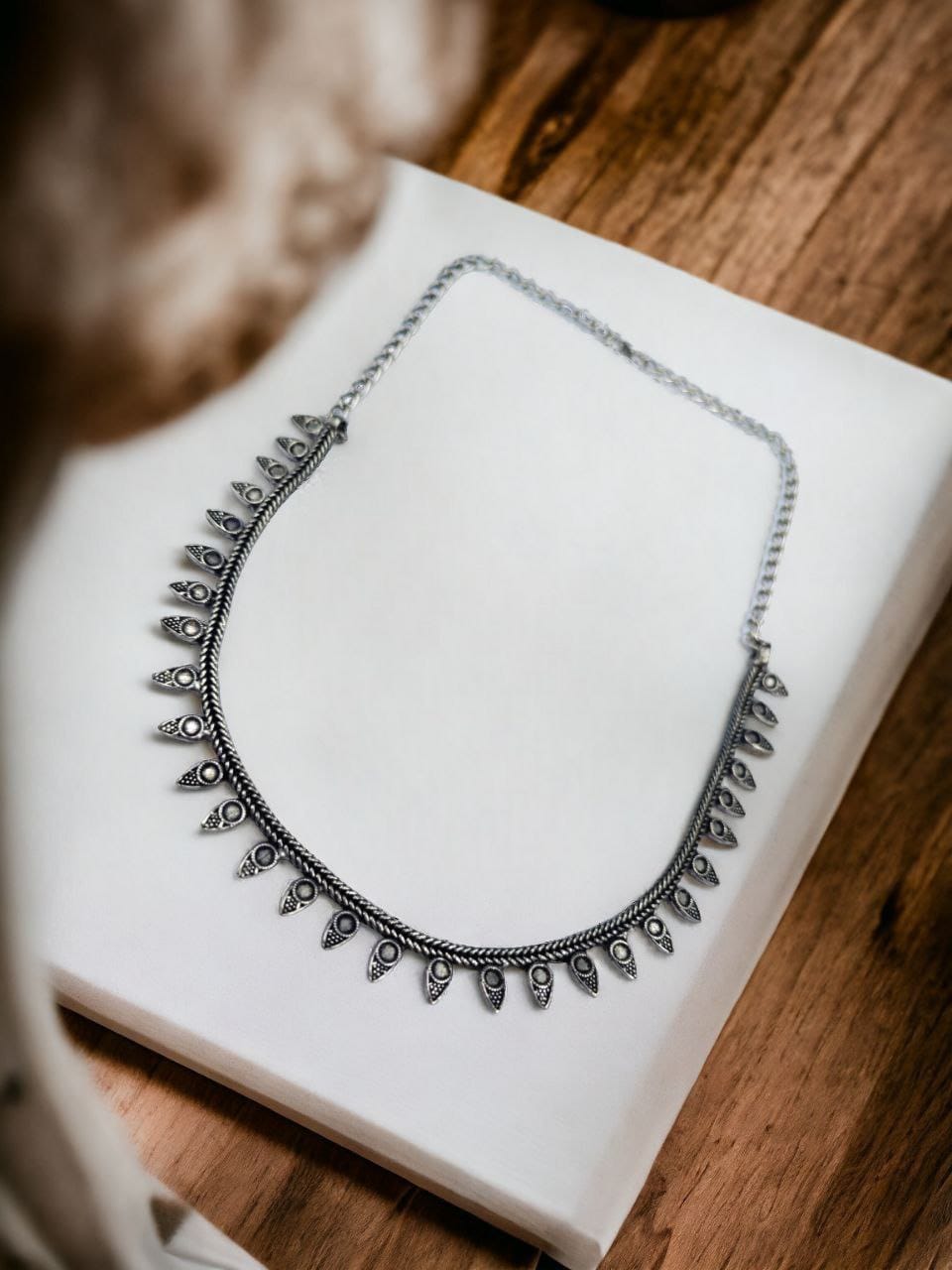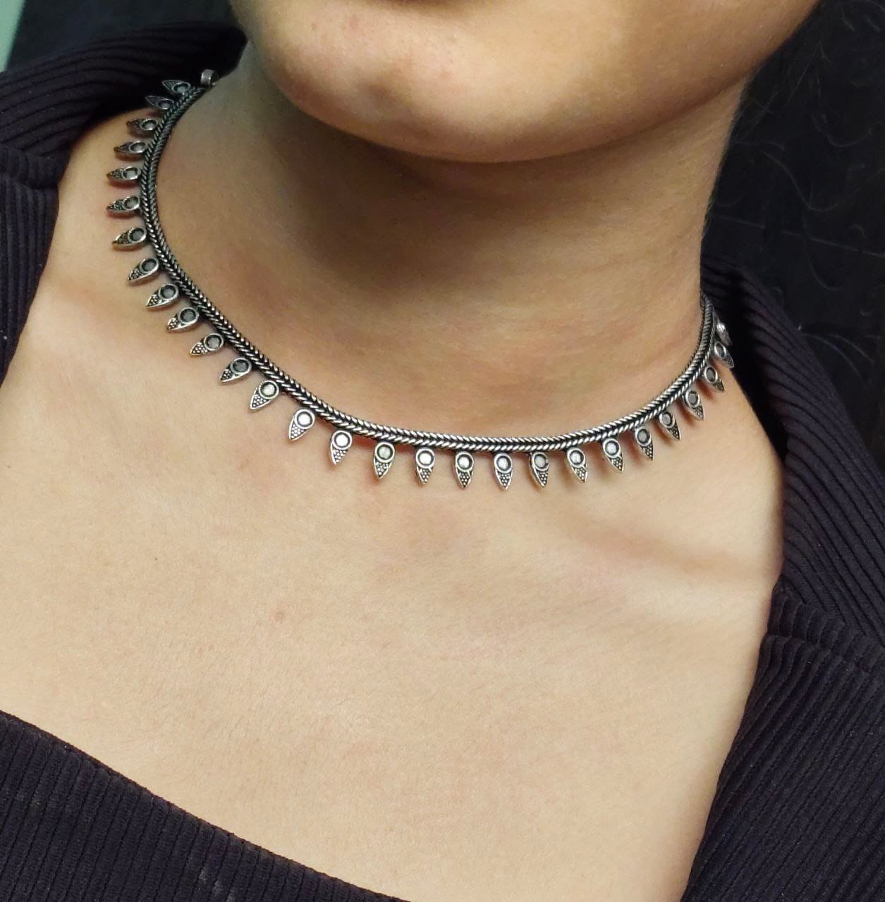 Bohemian Pakistani Choker Stylish Silver Oxidized Daily Wear Necklace Hippie Jewellery for Girls
