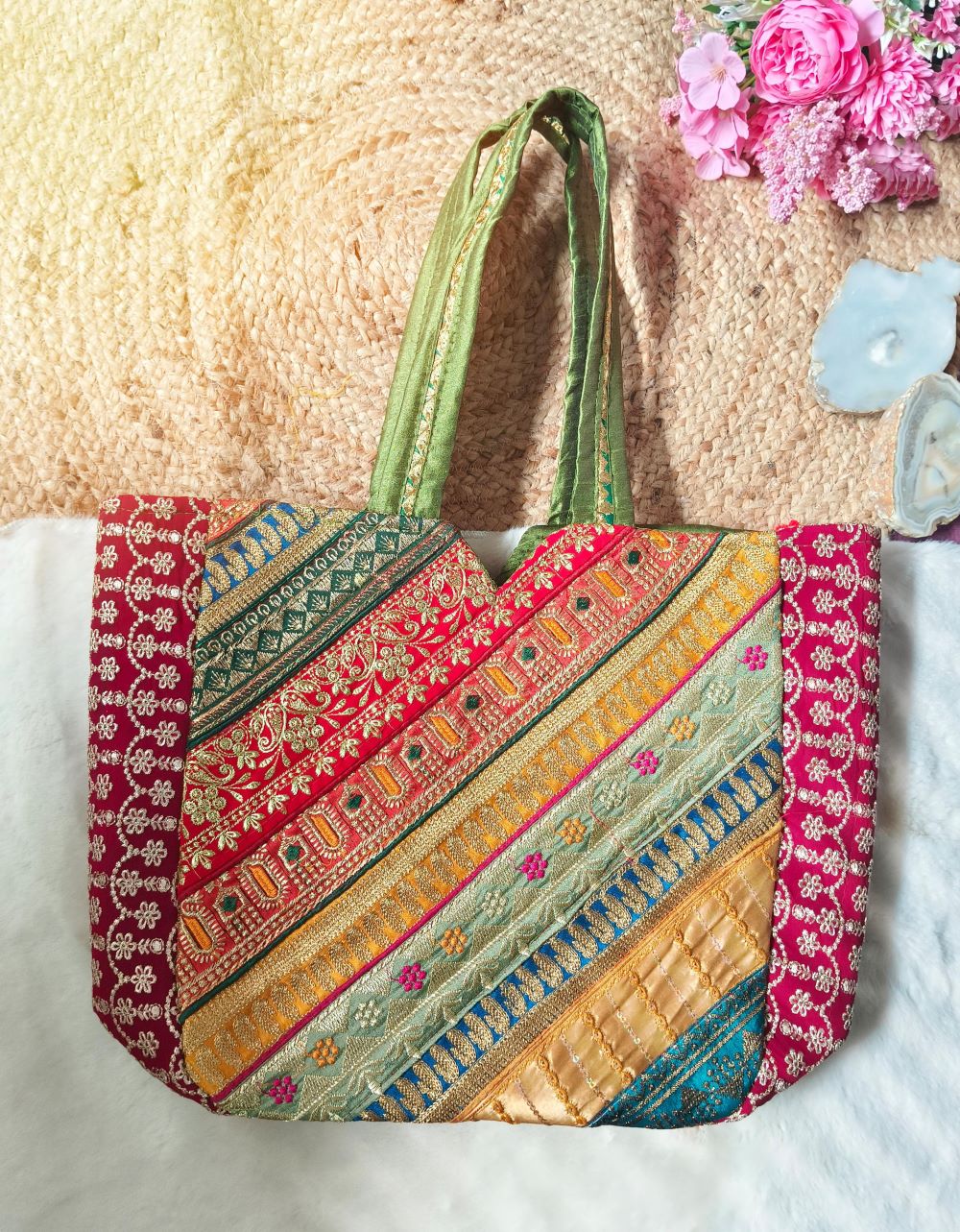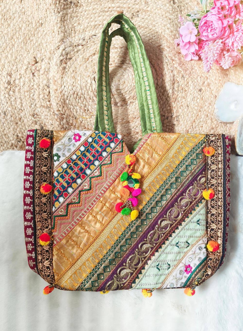 Banjara Handmade Double Sided Patch Work Multicolour Rajasthani Design Ethnic Tote HandBag For Women