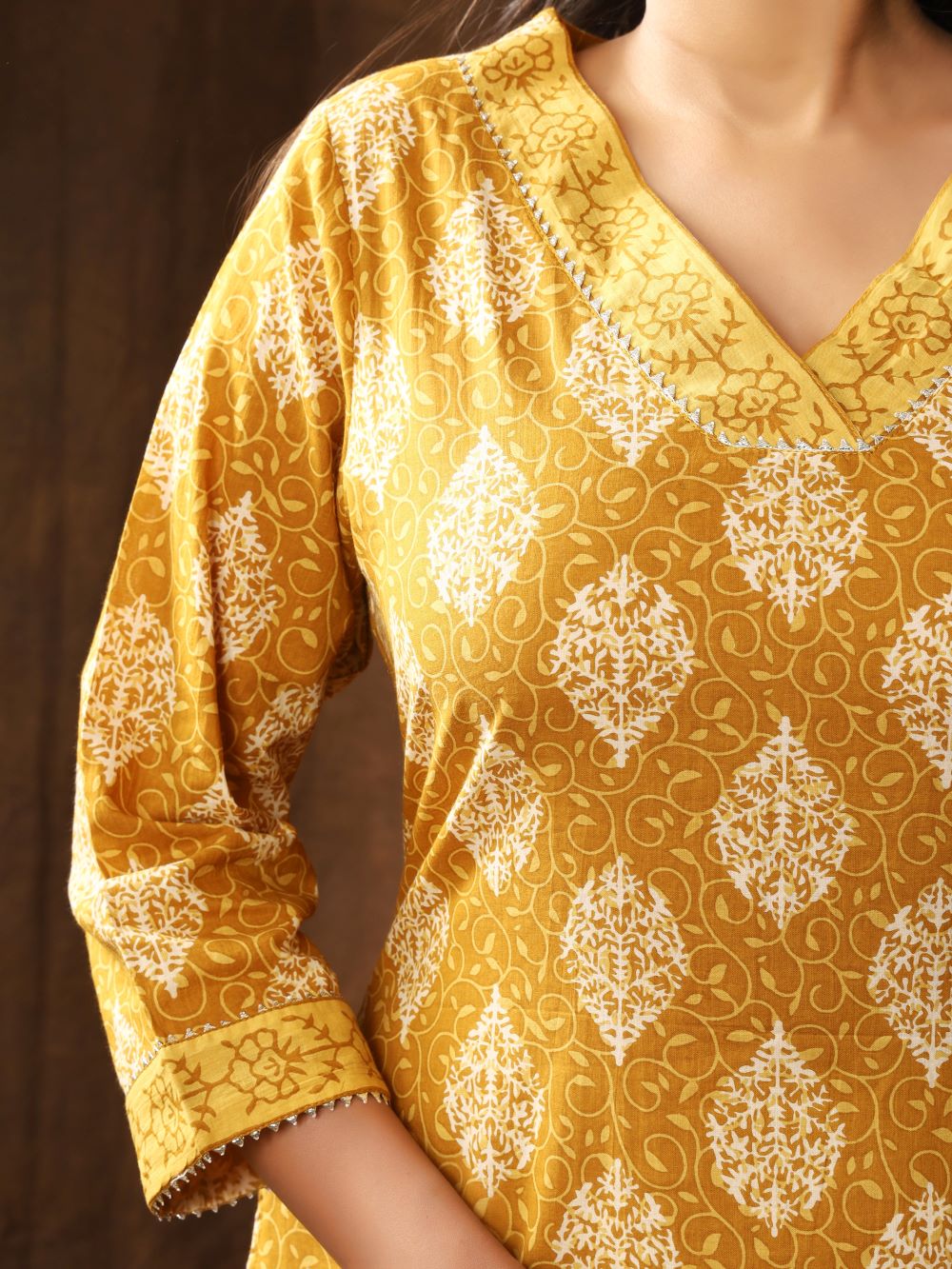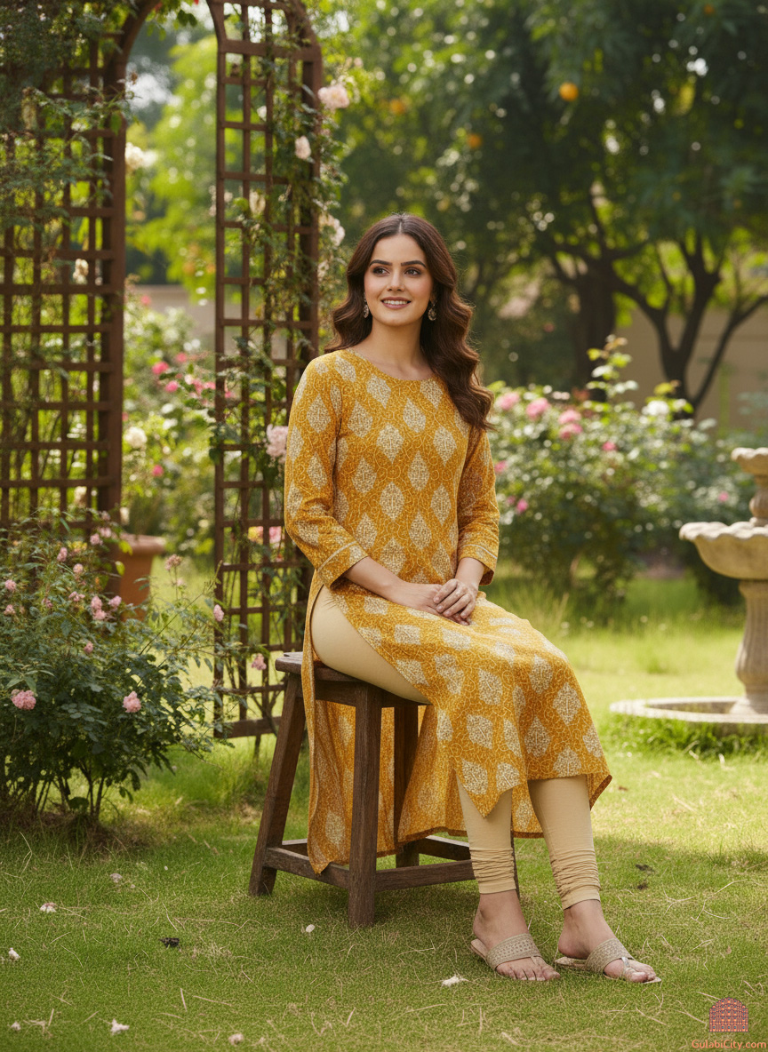 Elevate your everyday style with our Floral Print Kurti, a beautiful fusion of traditional artistry and modern comfort. Crafted from lightweight, breathable cotton, this kurti showcases an all-over floral block print in a refreshing shade-a striking example of India's rich textile heritage. The delicate motifs, created using natural, eco-friendly dyes, offer a soft yet captivating aesthetic. Sustainably made and kind to your skin, this kurti not only looks good but also aligns with conscious living. Thoughtfully designed for both comfort and versatility, it features flattering 3/4th sleeves and practical side pockets perfect for everything from casual outings to warm, sunny days. Whether you're dressing up or keeping it relaxed, this kurti effortlessly adapts to your mood and lifestyle.